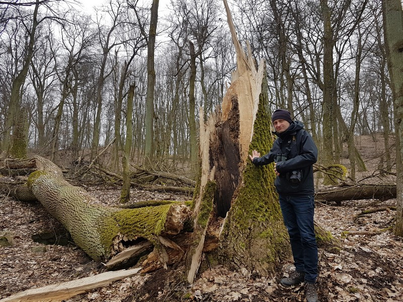 The area is a planned reserve called Kokoryczowe Wzgórze, also known as the Park in Radojewo. A deciduous forest of a nature-like character located in an area of considerable geomorphological diversity. Packed on 20 ha area, with 3 mid-forest ponds, geophytes blooming in spring, and a large amount of dead wood. The forest looks like a miniature of a natural forest, due to many hills, ponds, fallen trees, species richness of trees, shrubs and herbaceous plants - it delights the eyes. Among the most valuable birds you can observe here are many woodpeckers: Pic noir, Pic mar, Pic vert, Pic épeichette, Pic épeiche, as well as Chouette hulotte, one pair of Pie-grièche écorcheur and seldom Gobemouche noir. At the entrance to the park there is an unused palace of the von Treskow family, and there are graves of this family as well as artificial ruin in the park. Many huge monumental plane trees grow by the ponds.