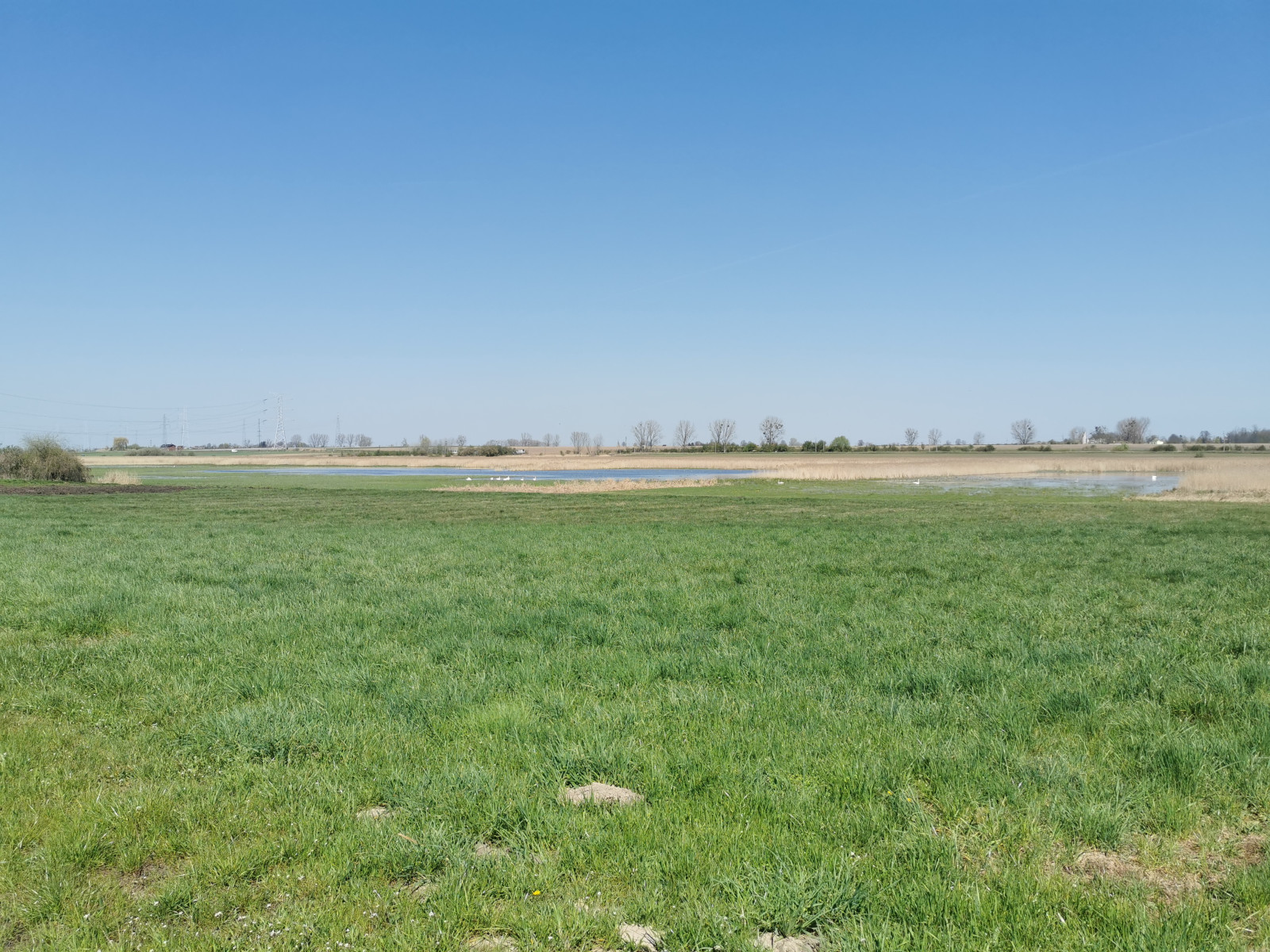 Fields, reeds and meadows. In the spring until around June (depending on the year) the meadow is flooded, one of the best places for ducks in the area. The best month for ducks is April or March, you can find there species such as: kačica lyžičiarka, kačica chripľavka, kačica divá, kačica hvizdárka, kačica chrapačka, kačica chrapka, labuť veľká. In some years (e.g. 2022) lots of kalužiak močiarny, bojovník bahenný, kalužiak červenonohý. In the summer, if there is some water left, then a lot of hus divá and žeriav popolavý with chicks. After July it is dry and quite empty. In the reeds you can hear slávik modrák, svrčiak slávikovitý and trsteniarik veľký.