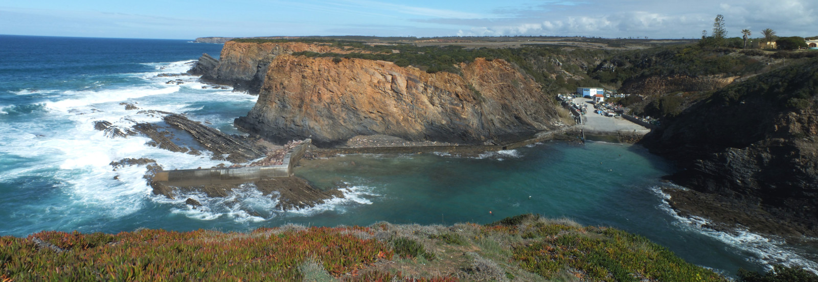From Cavaleiro, the CM 1124 takes you to the Farol do Cabo Sardão. Parking is available at the football stadium just south of the lighthouse. Press P on the map for directions. The walk below takes 2 to 3 hours. The coastal path here is much longer, allowing for much longer walks.