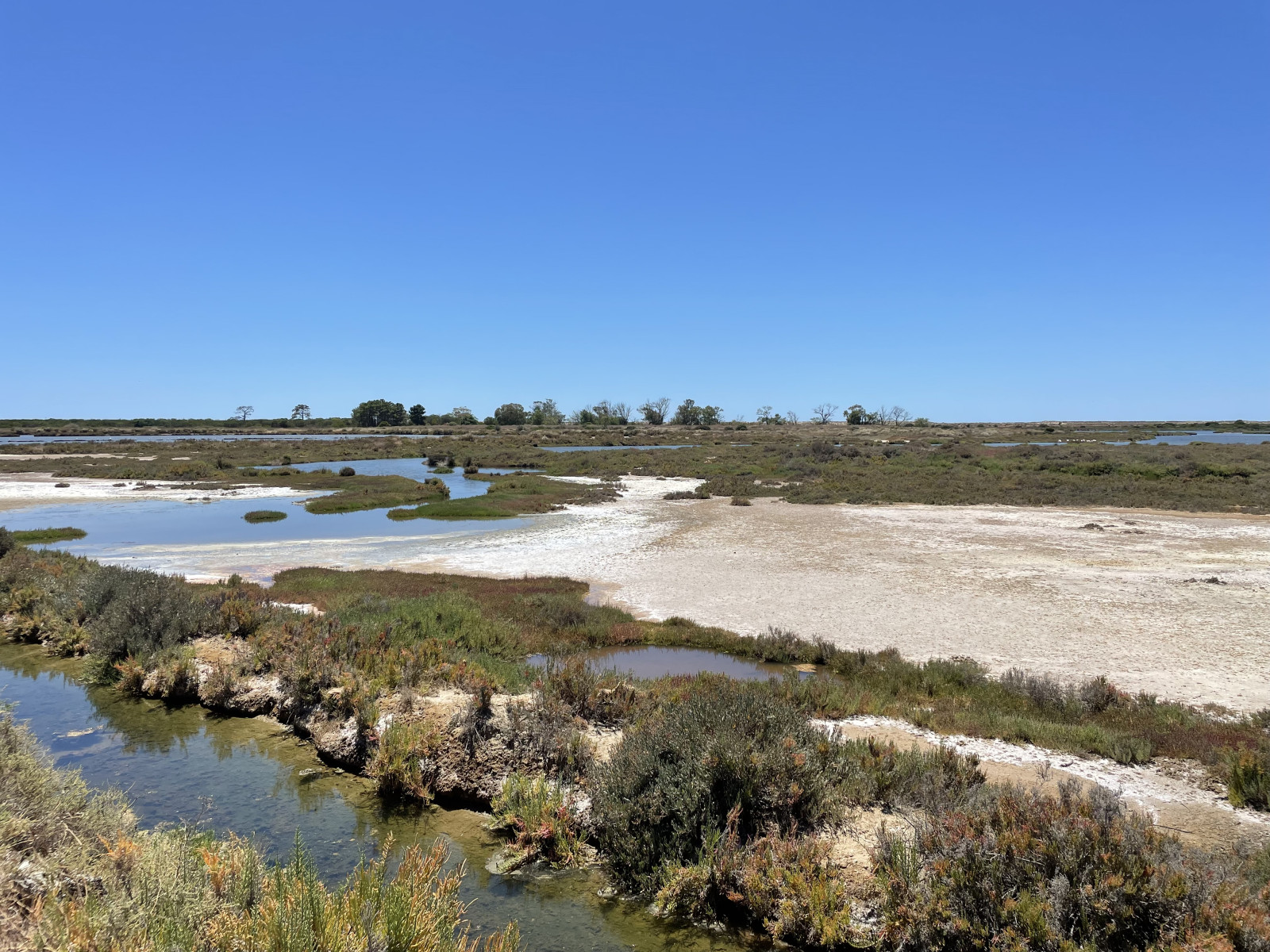 The 7km graded trail can be completed in approximately 3-4 hours. But also if you only do a part of the trail you will see many birds, because as soon as you start the trail, you’ll have the natural lagoon on one side of the path and on the other side brackish water and the saltpans. The long version effectively takes you to Quinta da Lago and the village of São Lourenço. On the São Lourenço side is a bird hide.