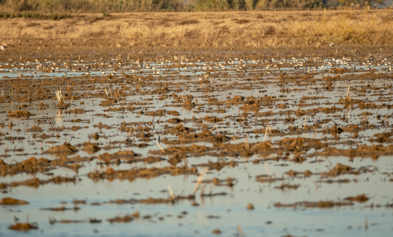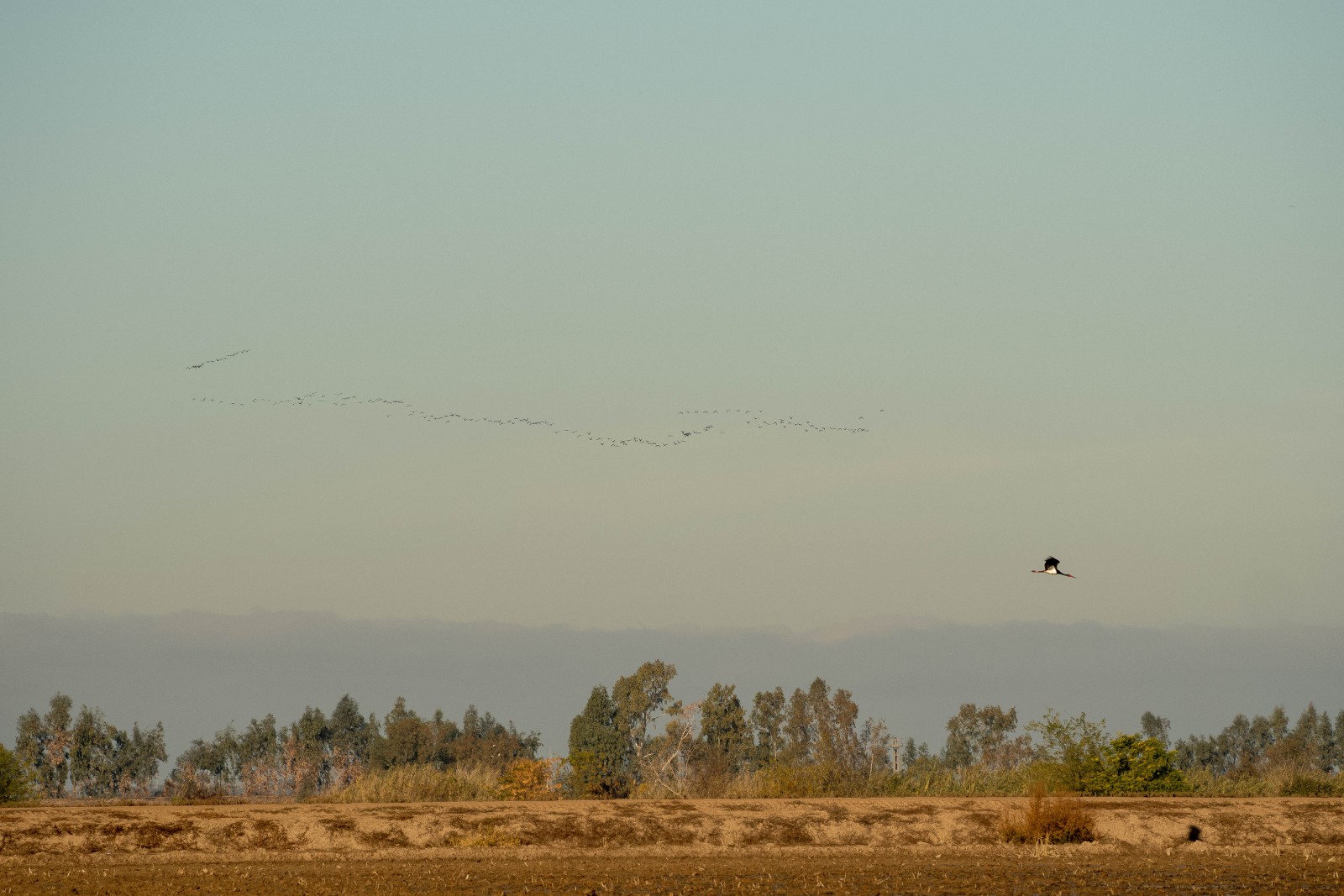 Desembocadura del Guadaíra is an area of abundant food for birds. It borders the Doñana National Park. Among the birds you can see in the area are Grulla Común, Espátula Común, Chorlito Dorado Europeo, Avefría Europea and Cigüeña Negra.