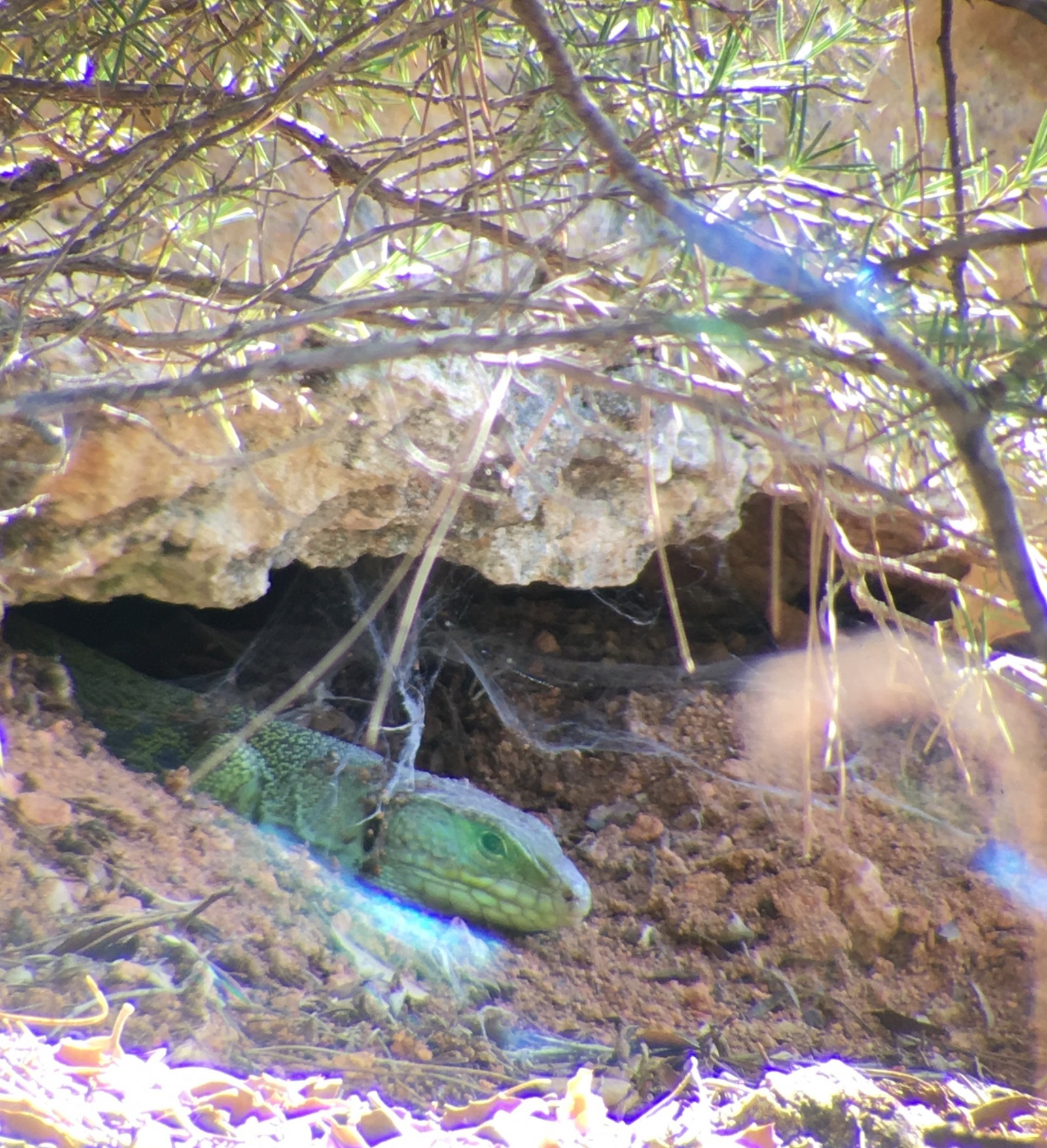 To get to the other side of the lake (seen from the road), take the car beyond the campsite. Just after the fenced rubbish dump kind off area, there is an unpaved path leading through some meditteranean woodland. I takes you around the campsite untilyou reach the banks of the lagoon. Whilst in the forest, look for Modra svraka and several songbirds including Vuga. When you reach the lagoon, follow the trail as far as you like. Along the way I saw ocellated lizard (as mentioned) but also several other lizards and Spannish terrapin is very common in the lagoon. Red deer may also be seen.