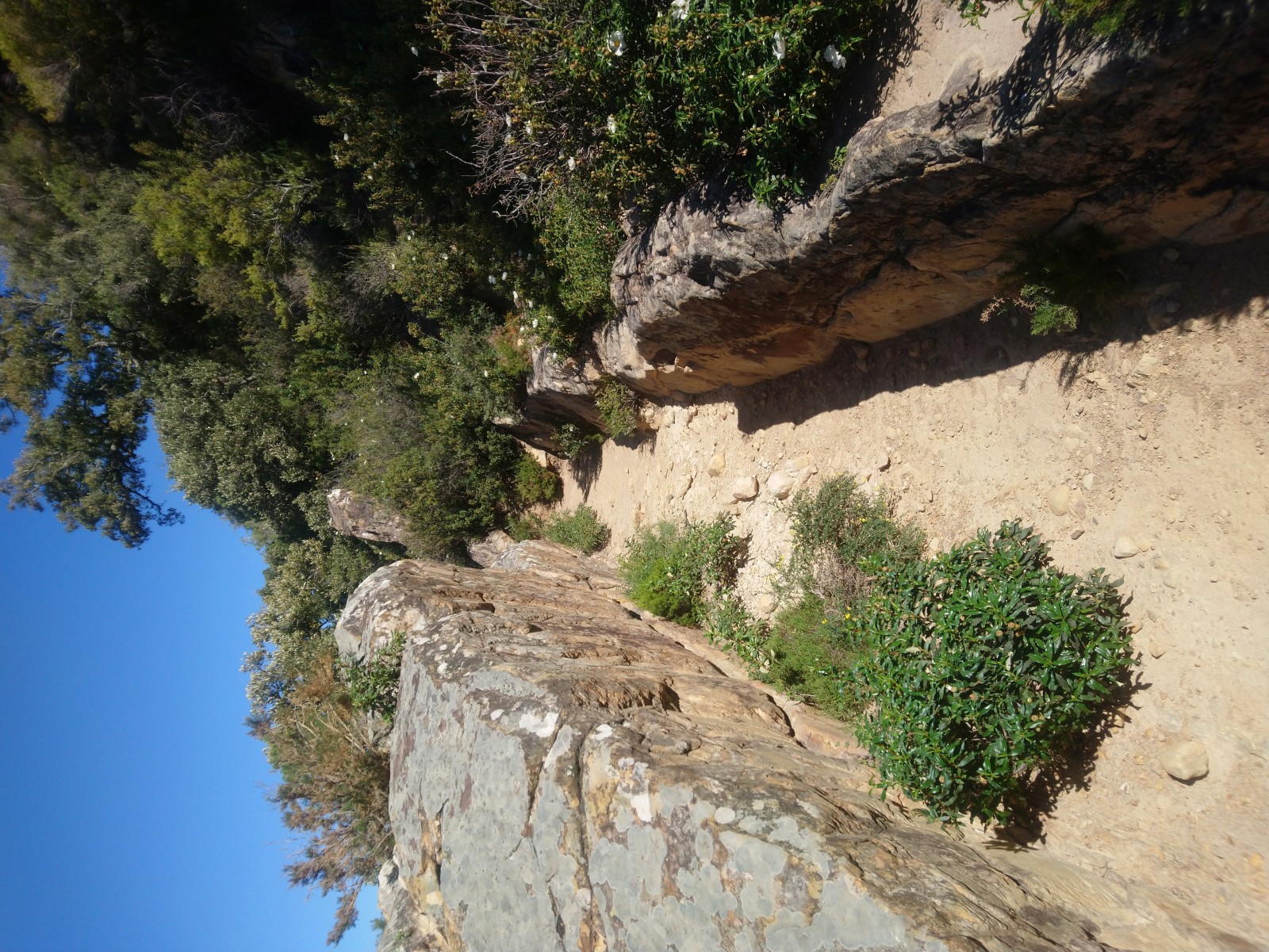From the viewpoint the path then seems to run into a blank cliff face (check again for Mierlă albastră and now also Lăstun de stâncă) but at the last moment veers to oneside up a steep rocky incline. The wild olive trees here shelter various species including the Spanish race ofPițigoi codat, Aușel sprâncenat and variable numbers of Pitulice iberică. Continue along the path through maquis scrub until you reach the ruins of an old mill which marks the end of the footpath. This is a good place for a picnic during which renewed scanning should produce still more raptors (there's even a slim chance of Acvilă de câmp iberică in this area).