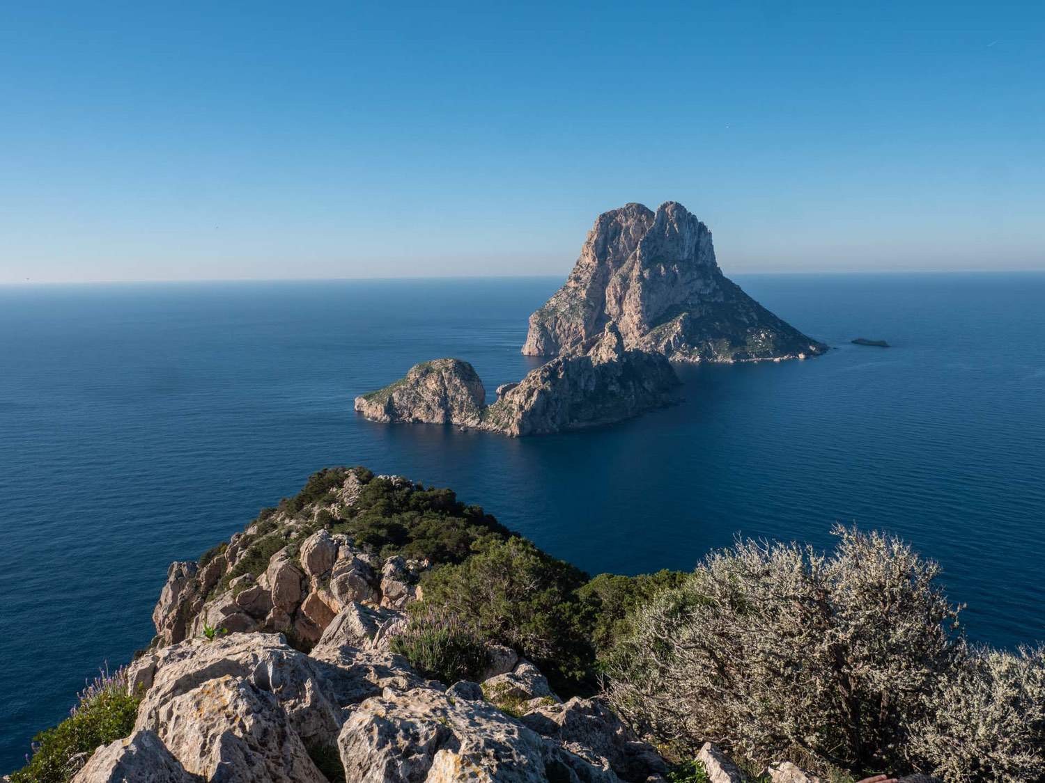 Puig des Savinar is a 2 kilometer loop trail (see the map) that is good for bird watching and is accessible year-round. The tower is a 10-minute walk uphill from the main Es Vedrà viewpoint. During high season the parking and the first part of the trail can get very busy. In this period it is best to arrive early. Late afternoon is not really a better option because this point is also very popular for making sunset pics. Put on good walking shoes, because the path is rocky.