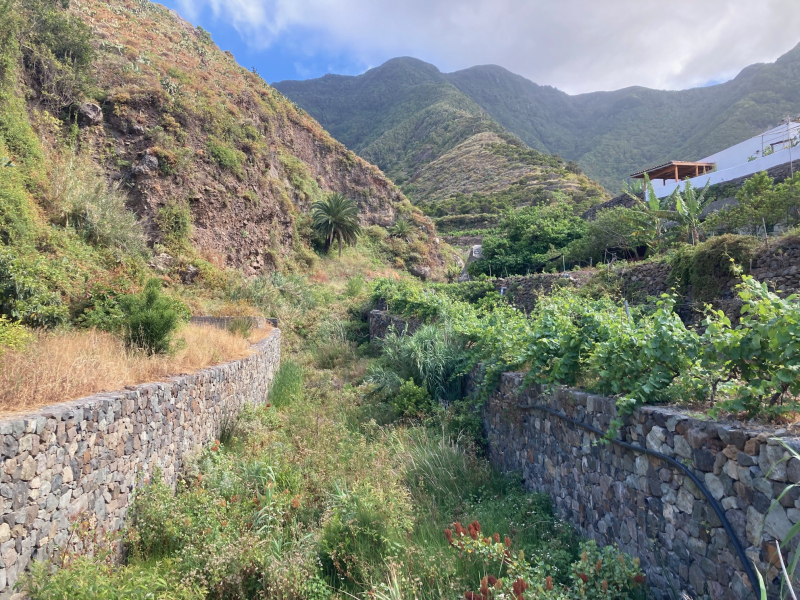 Taganana is an isolated village located on the northeast coast of Tenerife where you have to drive a winding road to get there. You can park along the main road that passes the village. Click on the P in the map to get directions. The circular walking route indicated on the map is only 2 km and runs over a paved road in and around the village (note that it has some very steep parts). But it is easy to extend your walk because the village is surrounded by many paths leading through the fields around the village.