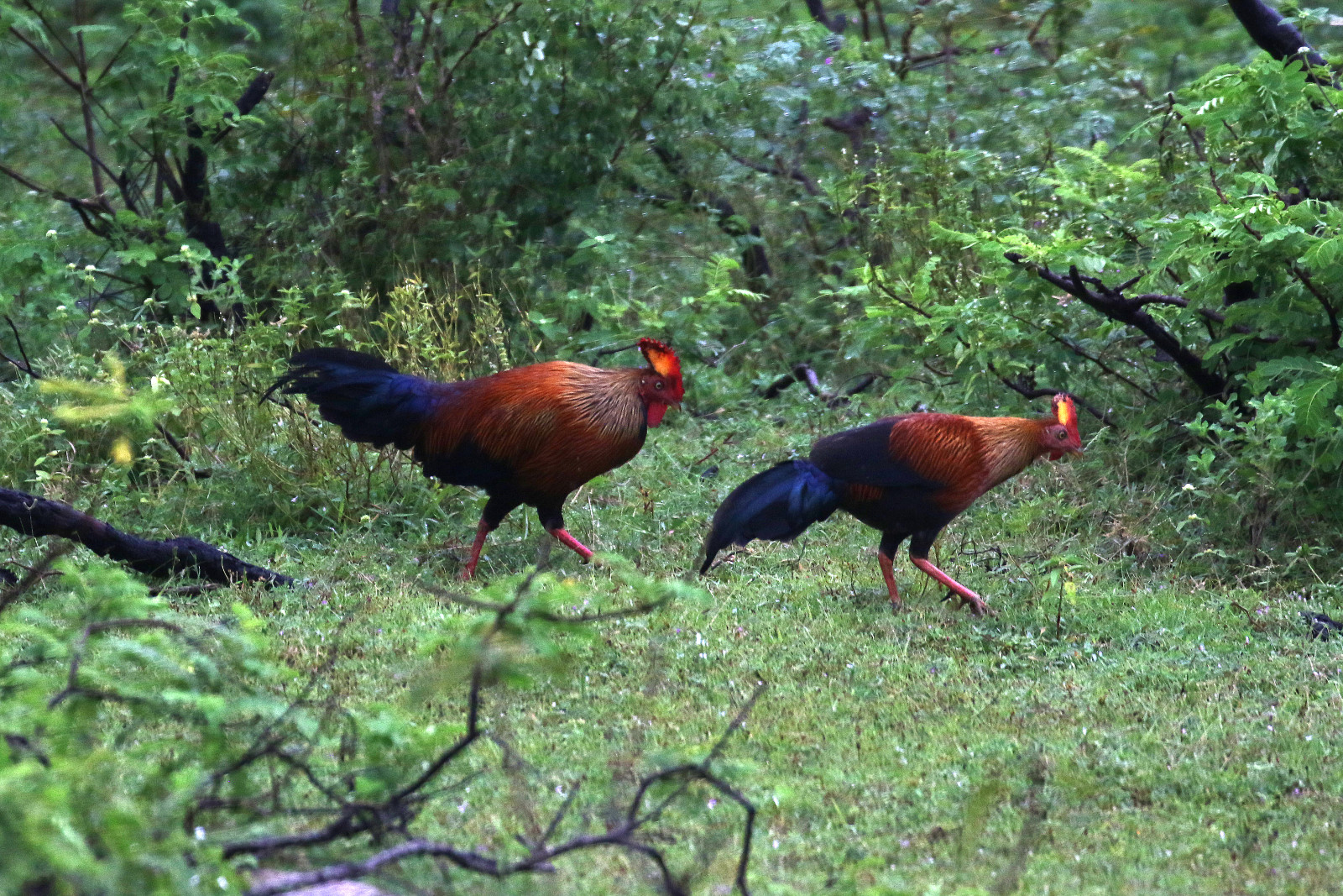 More than 100 species of birds are known to frequent Ritigala, including the endemic Spot-winged Thrush, Sri Lanka Junglefowl, Sri Lanka Grey Hornbill and Sri Lanka Spurfowl. Also Greater Racket-tailed Drongo, Malabar Pied-Hornbill, Blue-faced Malkoha, Rufous Woodpecker and Mountain Hawk-Eagle can be observed. Also over 30 species of mammals, including the endemic Golden Palm Civet and Toque Macaque call Ritigala home.