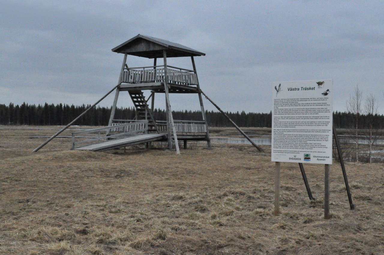 South of Glommersträsk there is a bird tower at Västra Träsket where you can see many different kinds of seabirds, waders and other birds especially in the spring. This western wetland is a dammed marsh that houses most species. The eastern swamp is also worth to check out and houses smaller species.