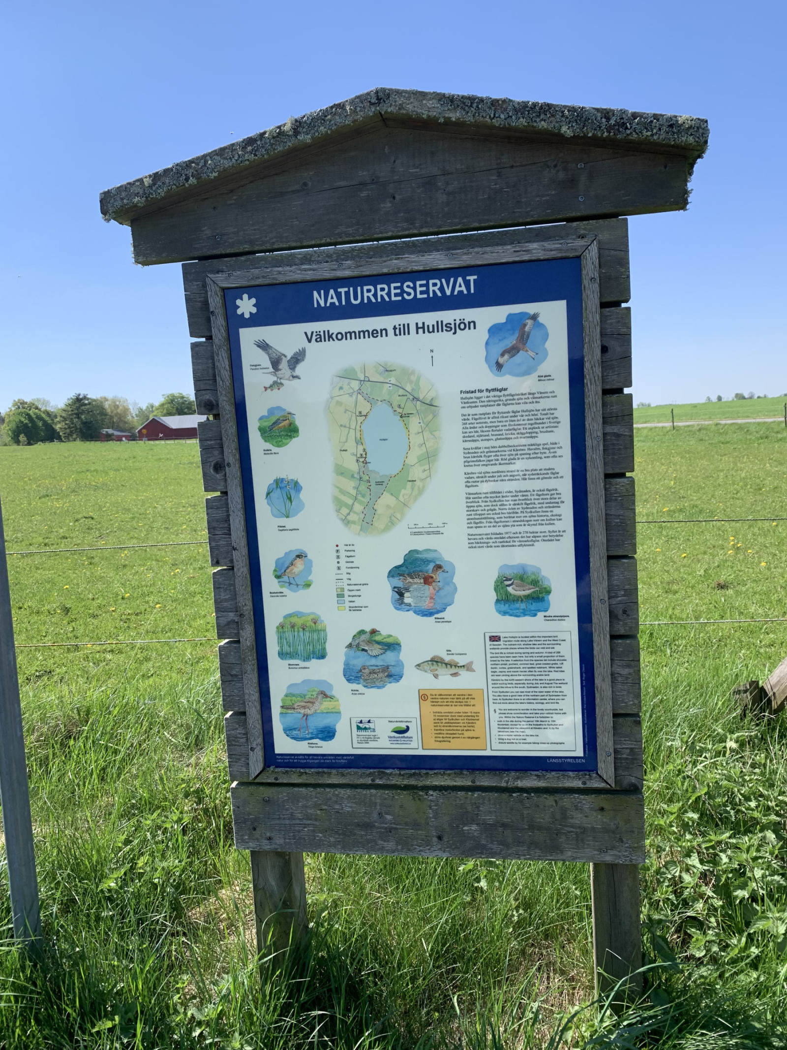 Hullsjön is a shallow lake. It is 1.2 meters deep and an important resting place for ducks, swans and geese. The lake and the surrounding area are part of the Hullsjön Nature Reserve. Most of the times the banks and surrounding fields are flooded. These wet fields attract many birds. During the summer months, the water level drops and the flooded fields can be grazed. This makes them suitable breeding environments for mainly wading birds. The lake has a rich bird life and annually identifies up to 200 different bird species around the lake. A total of 270 birds have been seen.