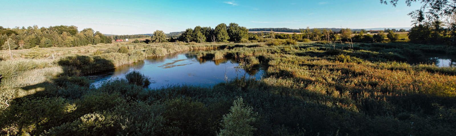 The Düdinger Moos can be reached from Düdingen railway station in twenty minutes on foot or by bike. The path leads through a charming and largely ecologically managed agricultural landscape, which is well worth a look through binoculars. If absolutely necessary, the place can also be reached by car. There is a designated free parking for four to five cars. The path is easy and should also be wheelchair-accessible despite slight differences in height.