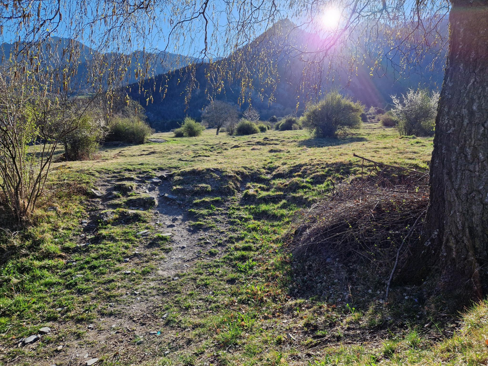 The Trimmis Allmend, also known as Witenen, consists of shrub-dotted dry grassland that grows in gently rising, characteristically furrowed terrain between the village edge and the Fürstenwald to the south and the Buochwald to the east. The meadows and shrubs grow on an alluvial fan at the foot of the Ful Berg / Gromser Chopf massif. This valuable natural area is managed extensively and laboriously maintained by the local Naturkundliche Vereinigung. In addition to 22 kilometers of hedgerows and 15 kilometers of dry stone walls on the community ground, the maintenance of the wooded pasture above the Witenen is especially noteworthy: open woodland is kept free of undergrowth and low vegetation by grazing or manual work. These ecological niches allow a rich flora and fauna to thrive, which is rare in the Chur Rhine Valley.