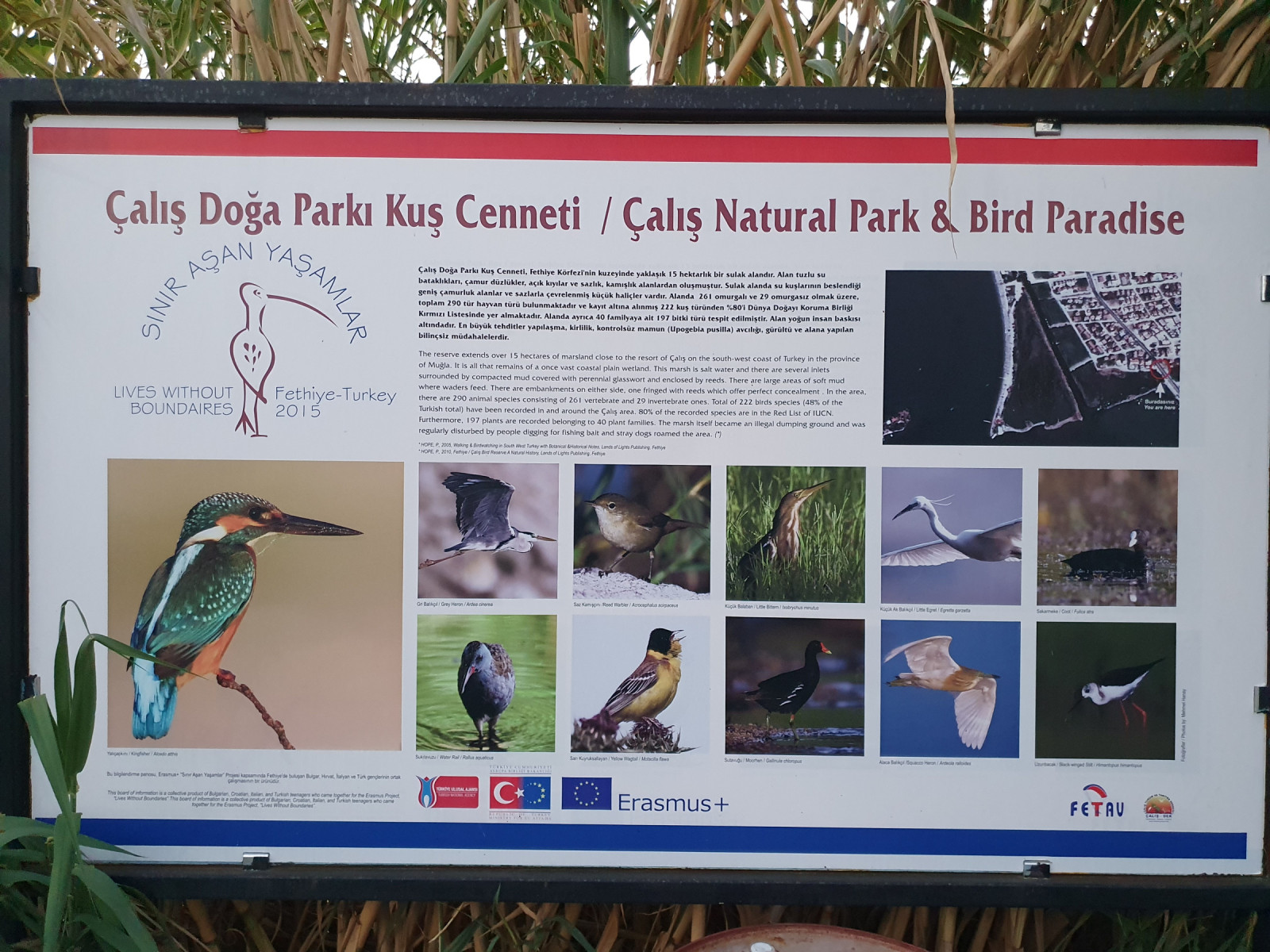Çalış Plajı Kuş Cenneti (Çalış Beach Bird Sanctuary) is located in Fethiye, right at the eastern end of Çalış Beach. The area is accessible from two sides. Paid parking or a short walk is available for the bird viewing platform. Press P on the map for directions to the parking.