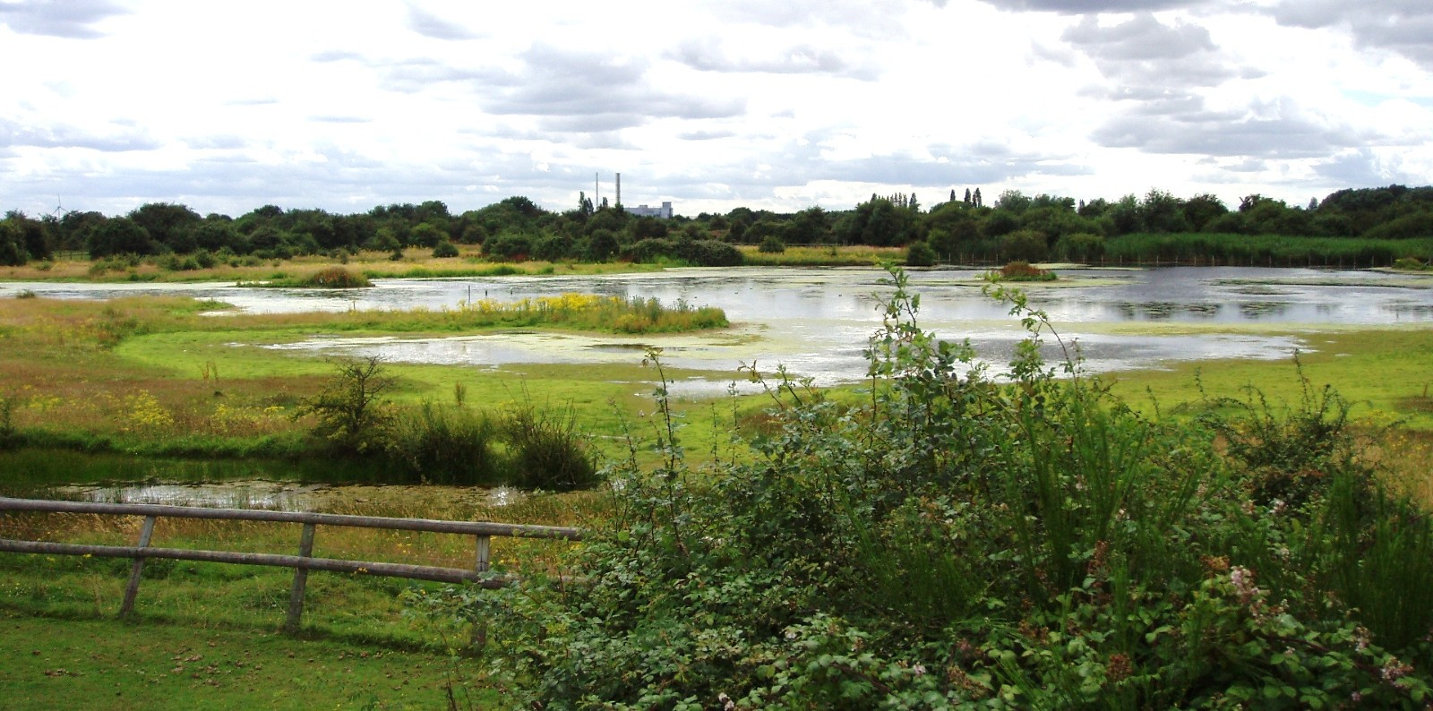 The surrrounding area is extensive hawthorn scrub, with open areas. By the river Rom (1) is a stand of rare Black Poplar trees, there is also large areas of grassland and enclosures with maturing trees in them. In cold weather the Eastbrook School Playing Fields (2) are an excellent site for Abibe-comum, Gulls and Tarambola-dourada, which are often dispersed by Gavião da Europa and more recently falcão-peregrino.