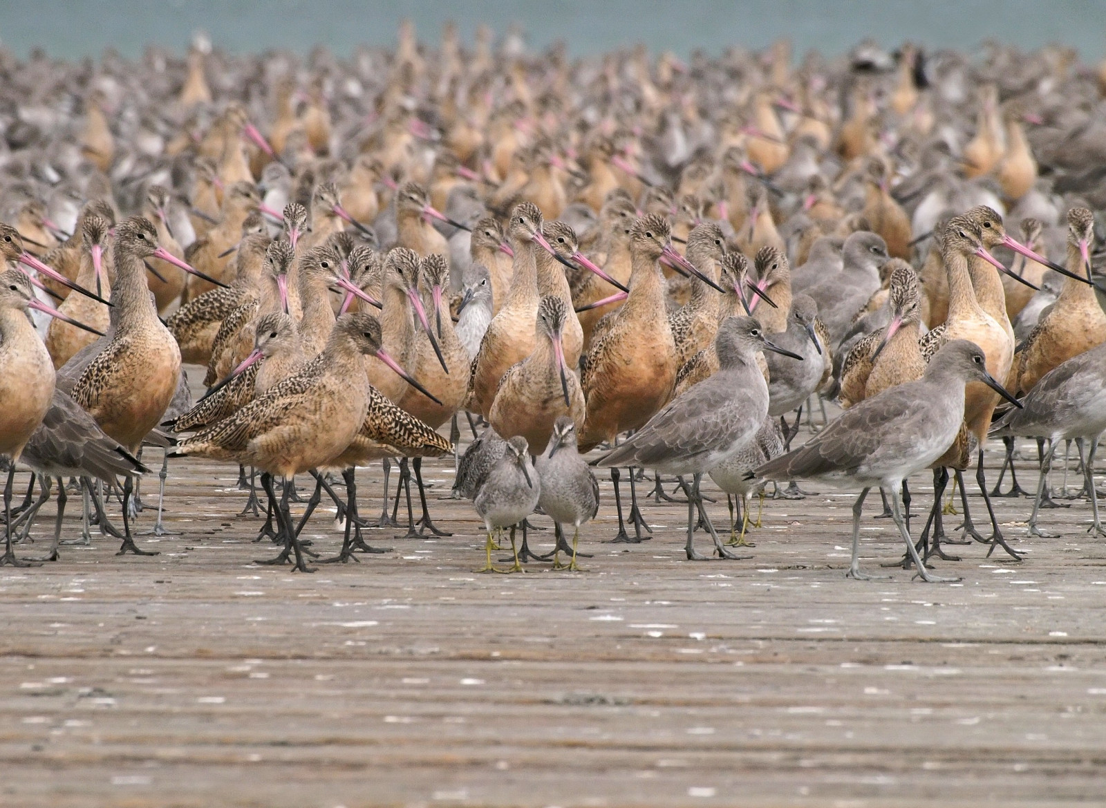 Arrowhead Marsh includes a small park surrounded by bay waterways and marshland, near Oakland International Airport. There's a boardwalk out into the marsh and a network of trails with several footbridges leading to adjacent shoreline areas. Rarities are frequently reported here. One of the easiest places in the East Bay to see and hear Ridgway's Rail and Sora at high tide, plus a variety of shorebirds such as Long-billed Dowitcher, Dunlin , Black Turnstone, American Avocet, Black Stilt ,Long-billed Curlew and Marbled Godwit.