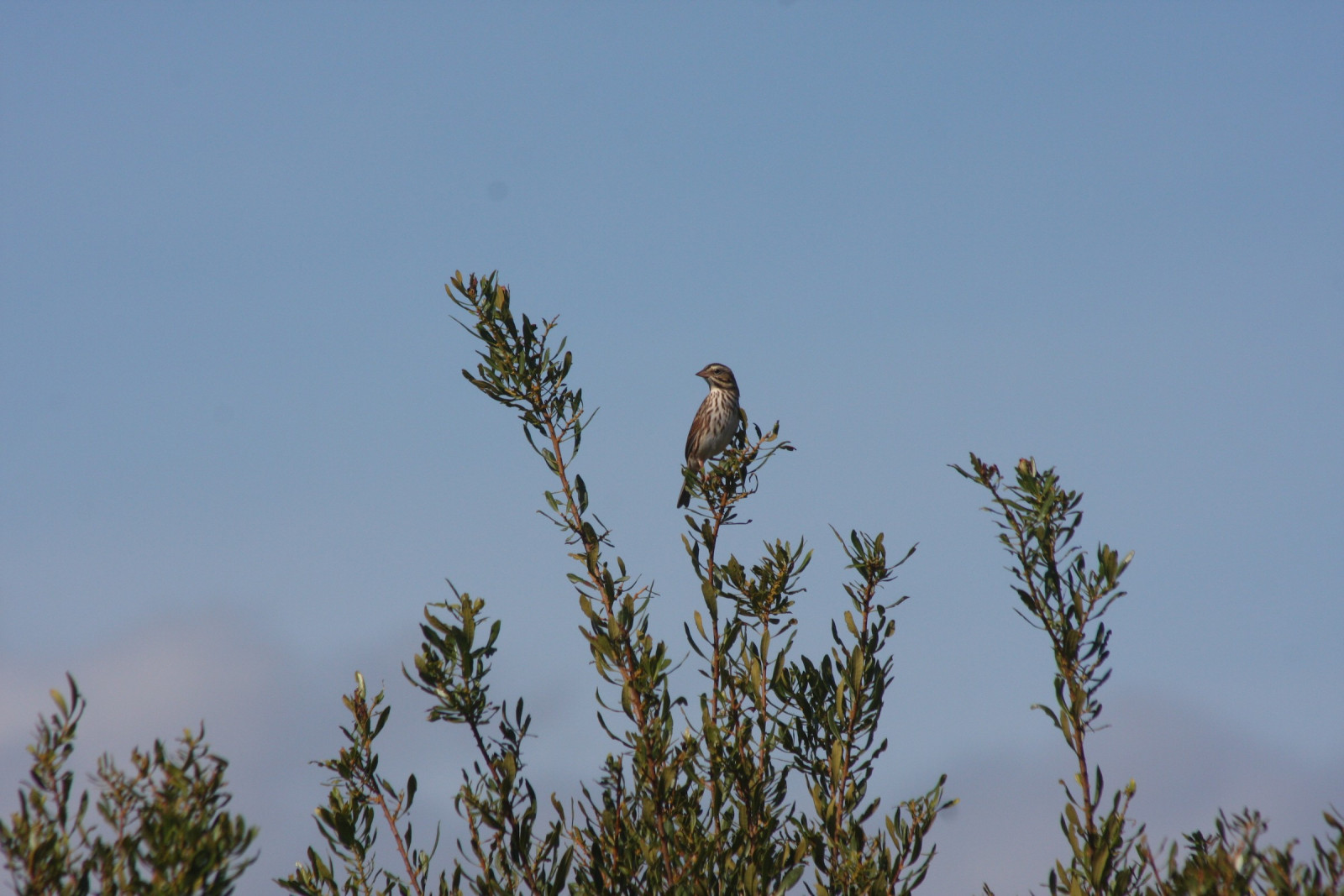 High tide is the best for wintering sparrows as the tide pushes them closer to the paths. Check any of the bushes along the perimeter. The bushes in the northeast area of the park are quite good as well.