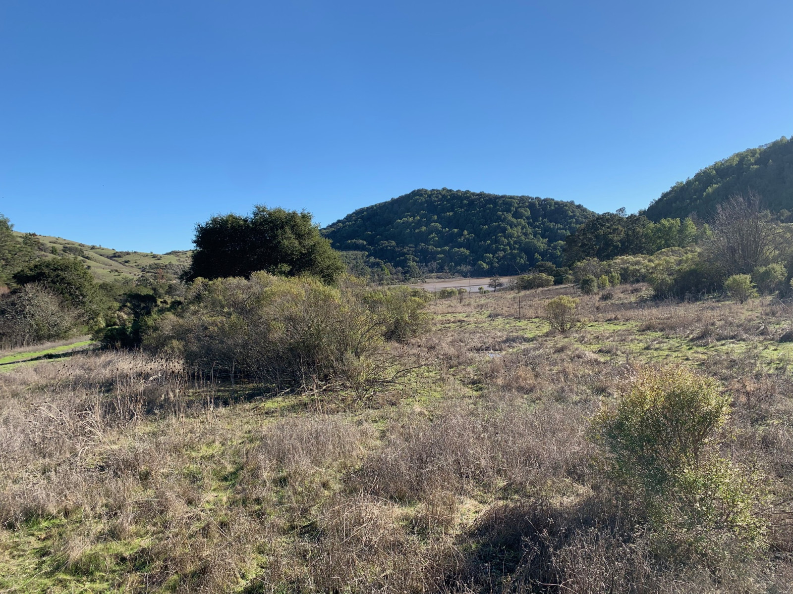 A protected watershed of meadows, pasture, pine woods and oak-madrone forests surrounding the area where Moraga Creek flows into Upper San Leandro Reservoir