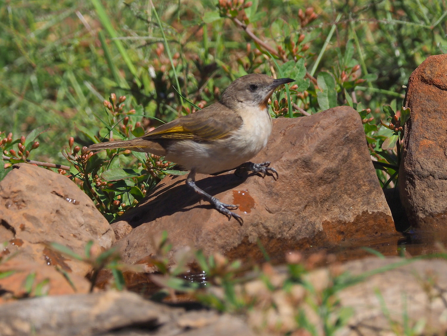 Blue-faced Honeyeater, Buff-sided Robin and Yellow Oriole can often be found near the clubhouse. Check the woodland and ponds around the golf course for finches, Banded Honeyeater, Grey-crowned Babbler, Dollarbird and pardalotes.