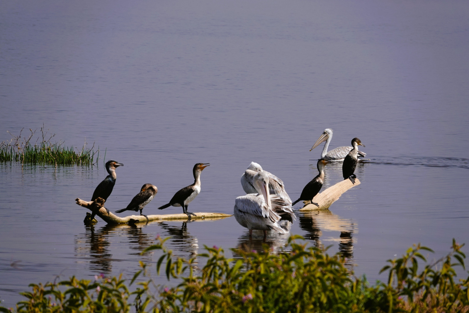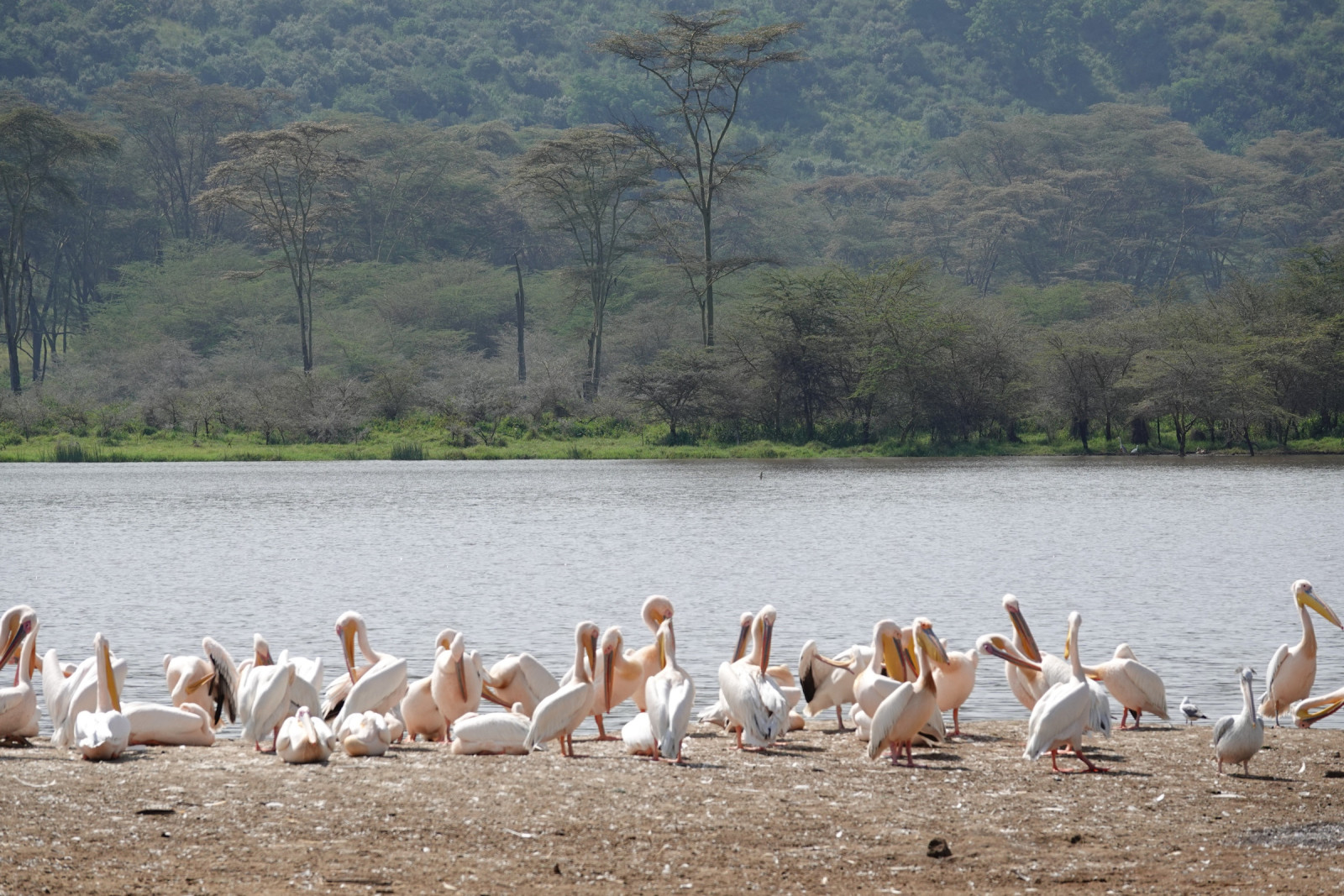 The Muya Causeway is one of the hotspots for birding in Lake Nakuru National Park. This raised dam is surrounded on two sides by shallow water containing hundreds of birds (and some hippos). Birds you can see include Great White Pelican, Pink-backed Pelican, Black-winged Stilt, Common Ringed Plover, Three-banded Plover, Blacksmith Plover, Greater Flamingo, Little Grebe, African Openbill, Marabou Stork, Saddle-billed Stork, Yellow-billed Stork, Sacred Ibis, several species of heron and egrets and many other birds.