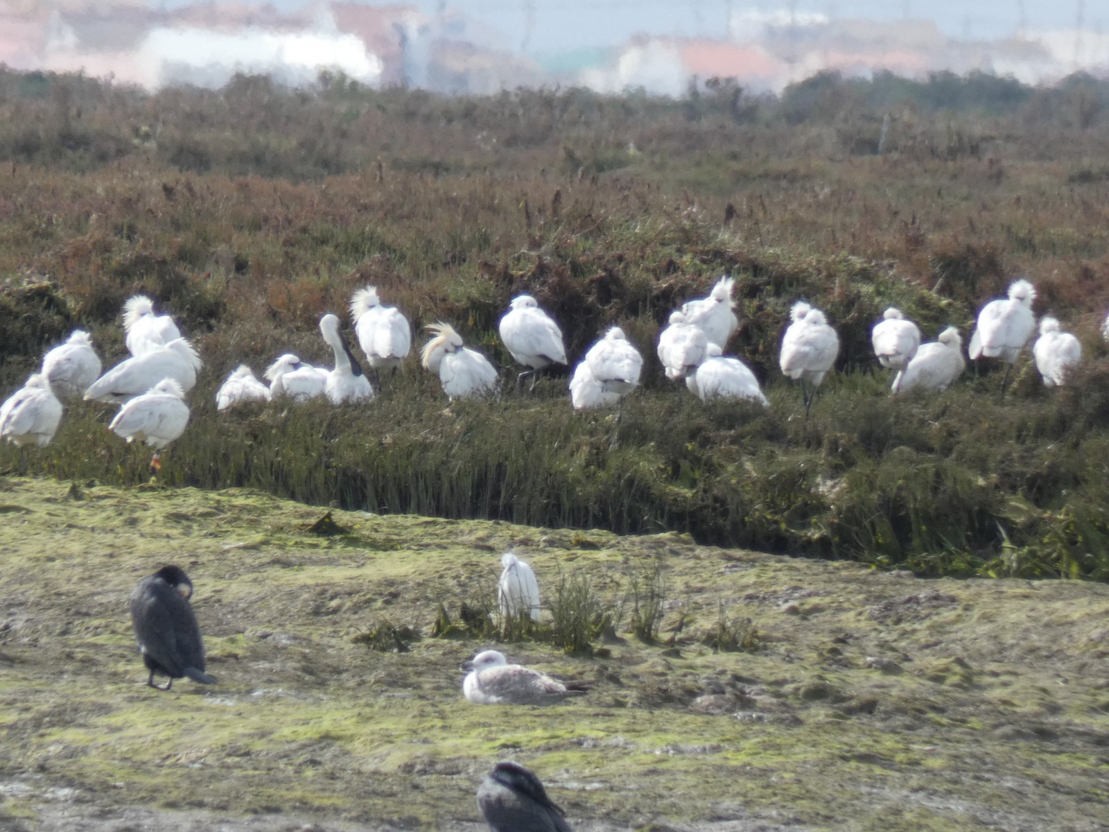 The mud flats are observable during low tide, with sometimes high densities of wading birds, especially during migration and in winter. The resting colony of Löffler can be seen from the pier.