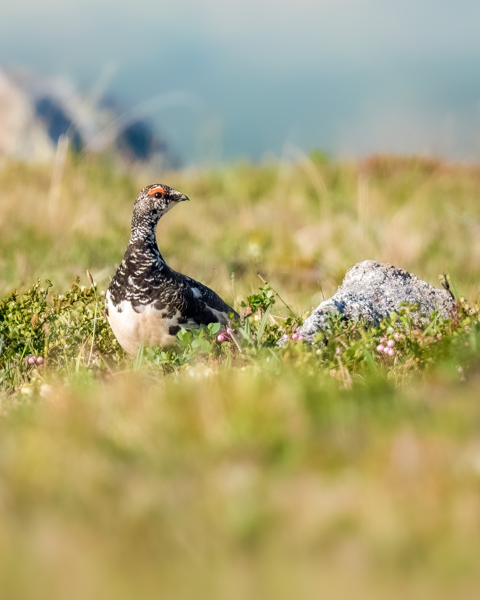 If you follow the Njupeskärs trail you will after a 15 minute walk come across Njupeskär, Swedens largest free falling waterfal, here you could encounter Ringdrossel, Gartenrotschwanz and Steinschmätzer. Some years Gerfalke can be found around the waterfal breeding. If you move up the mountain and on top of the plateau you might just find Alpenschneehuhn, Moorschneehuhn or Goldregenpfeifer. Continue to the Rörsjön cabins and the lakes surrounding them and you can come across Trauerente, Mittelsäger or Prachttaucher. This trail from the Naturum to the Rörsjön cabins and back is about 9 km long. It is possible to rent cabins in the park and there is a restaurant close to the Naturum.