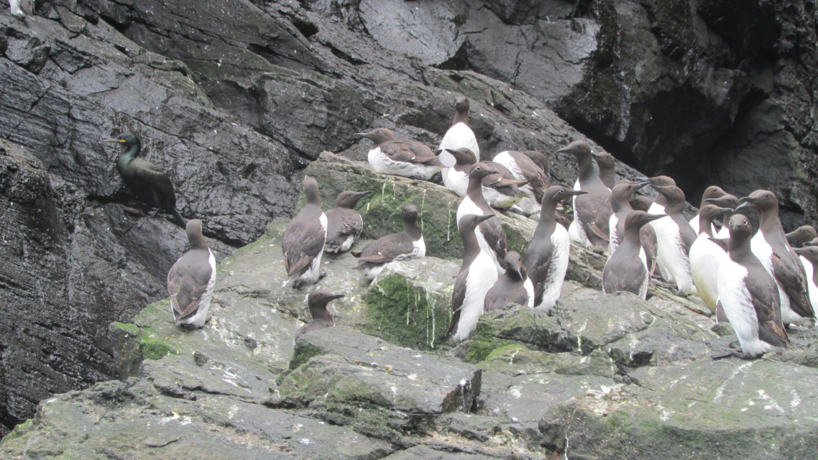 The island of Mingulay is small but highly diverse in landscapes and birds. Tordalk, Trottellumme and other seabirds, notably Krähenscharbe and Dreizehenmöwe, nest in the thousands on 900-foot cliffs (while Papageitaucher prefer the island's vegetated hilltops). Skua and Seeadler fly overhead in search of prey. Many more species can be observed in passing. Small patches of moorland and wetland host many familiar species. Boat trips take you below and above the cliffs, allowing you to observe a diverse array of beautiful species. Sea mammals are also common sights (dolphins, seals, whales). Explore with care and respect for the island's true inhabitants.