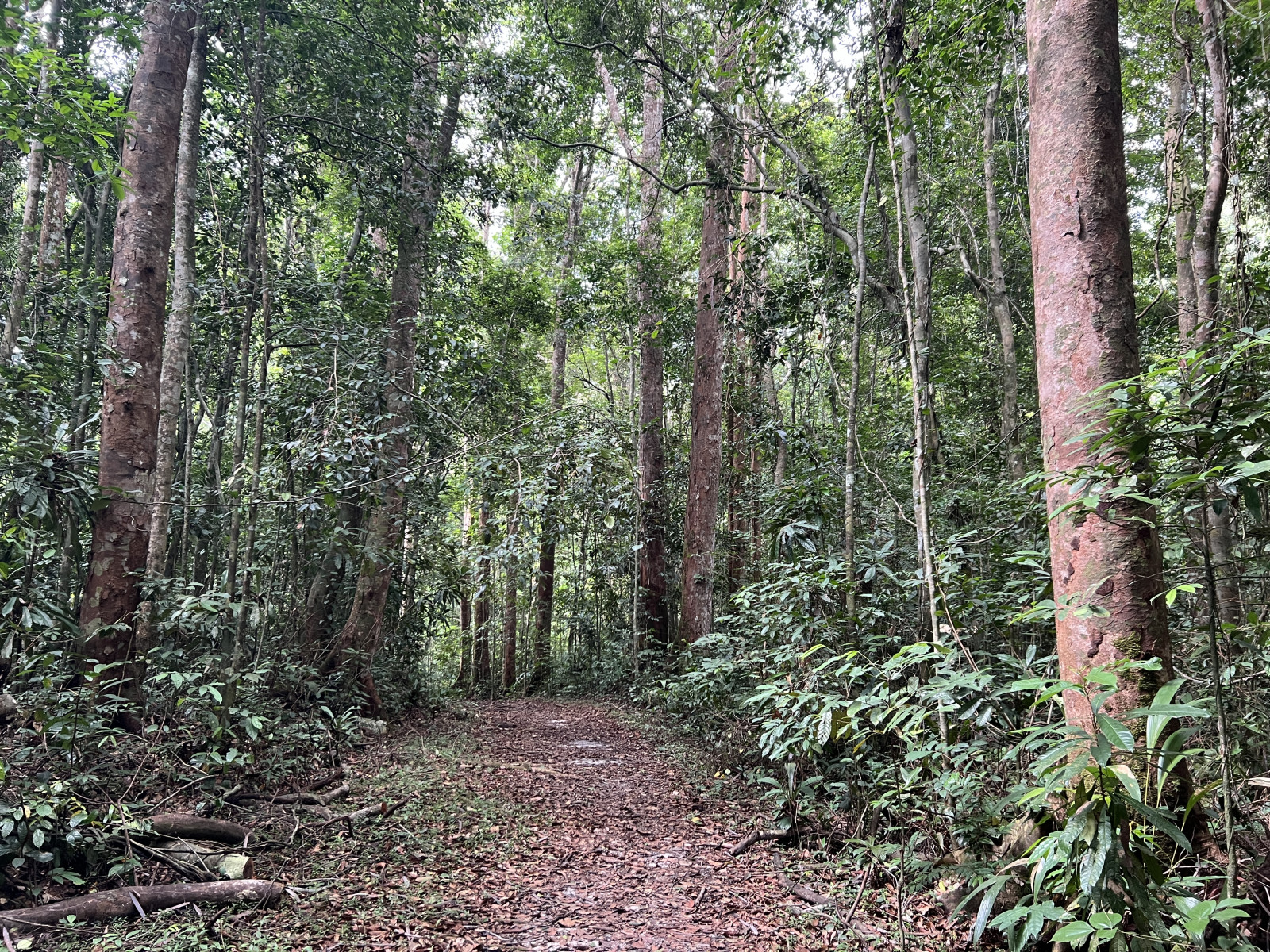 Arboretum Raponda Walker and Mahondah Forest Reserve is close to Libreville (30 minutes). Get a taxi to drop you off, and arrange for it to pick you up several hours later (or something like that). If stuck, ask one of the staff to help you out - they seem to be very helpful. The arboretum opens (no gates) at 7:30am and has a small entrance fee of 1000 CAF. Because it is close to the city the arboretum and reserve are very well used on weekends by (noisy) hikers. Cell service is very spotty out there.