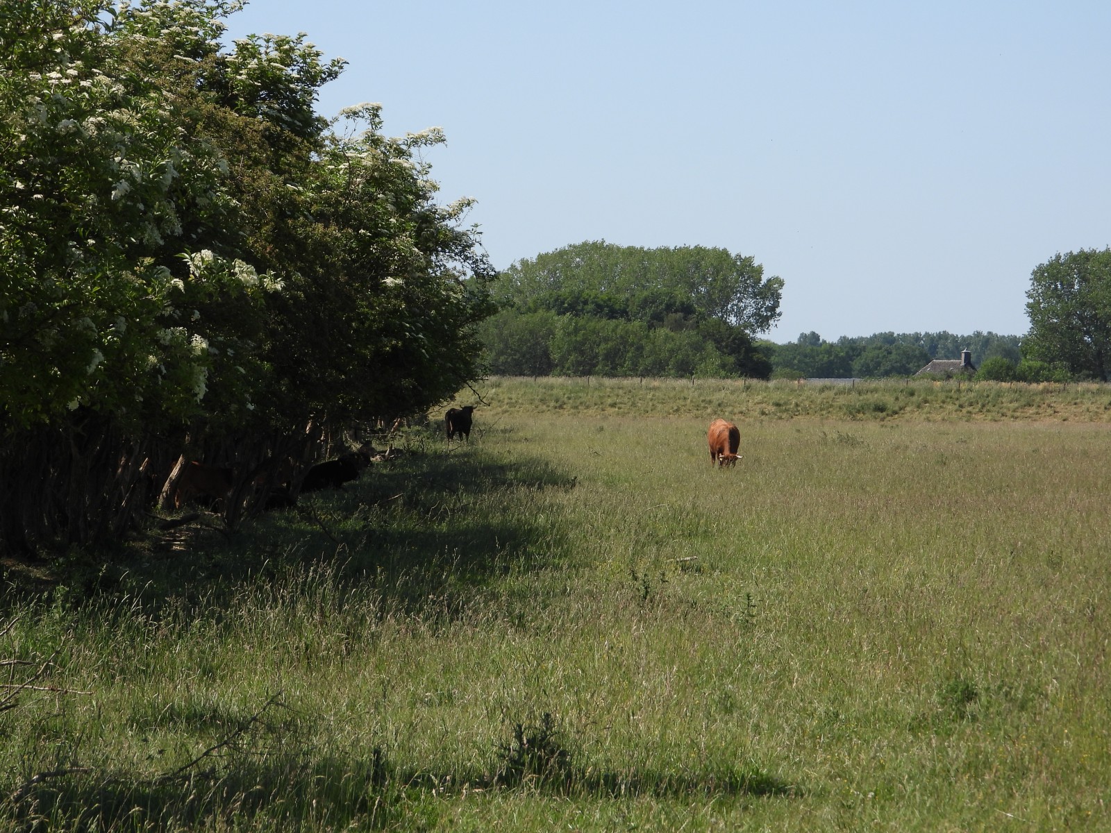 New nature reserve in an the old meander of the river Maas. The grasslands are grazed by Tauros cattle. From the dykes you have good views on many birds.