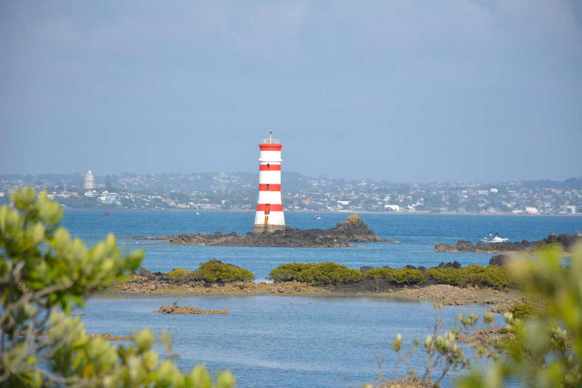 Volcanic island in Auckland's Hauraki Gulf where coastal lava fields transititioning to native forest up the peek. Accessible by ferry with scenic tracks.