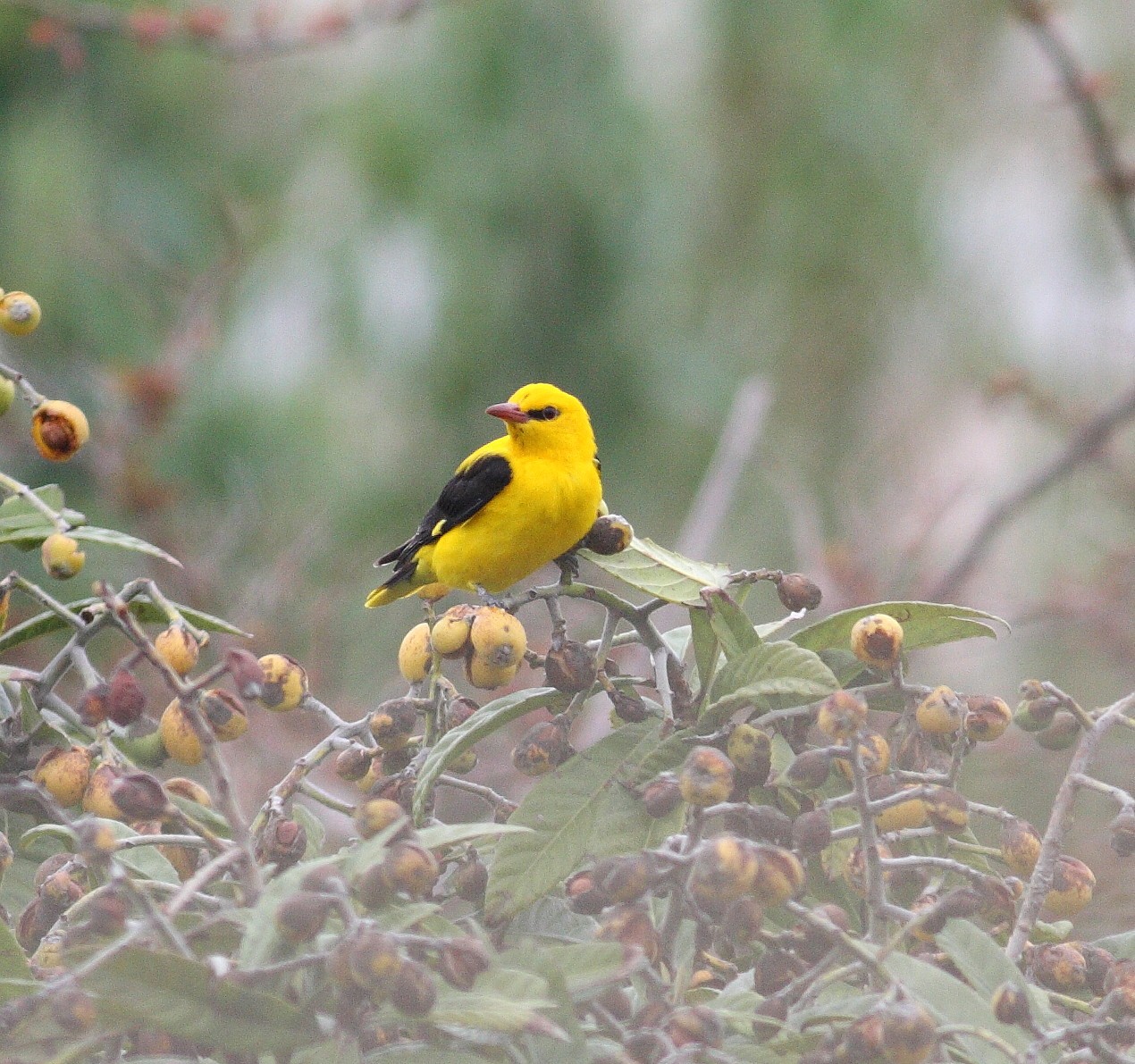The banks of the Drau near the village of Feistritz im Rosental are not very spectacular or of a dazzling scenic beauty. But there is at least one good reason to make a stop here. The trees that line the river Drau here are full of the bird we call 'Pirol' (Golden Oriole) in Austria. In May, June and July you can find them here in quite large numbers. As always, it is still difficult to get them in the binoculars, because they are high up in the trees. But they often cross from tree to tree and across clearings in the forest and across the river. In addition, they are very noisy and easy to find by ear. An extra bonus are the Goosander that can sometimes be seen with chicks on the river Drau. A stroll through the forested banks als can also deliver Yellowhammer and in the parts where the forest opens up Red-backed Shrike.