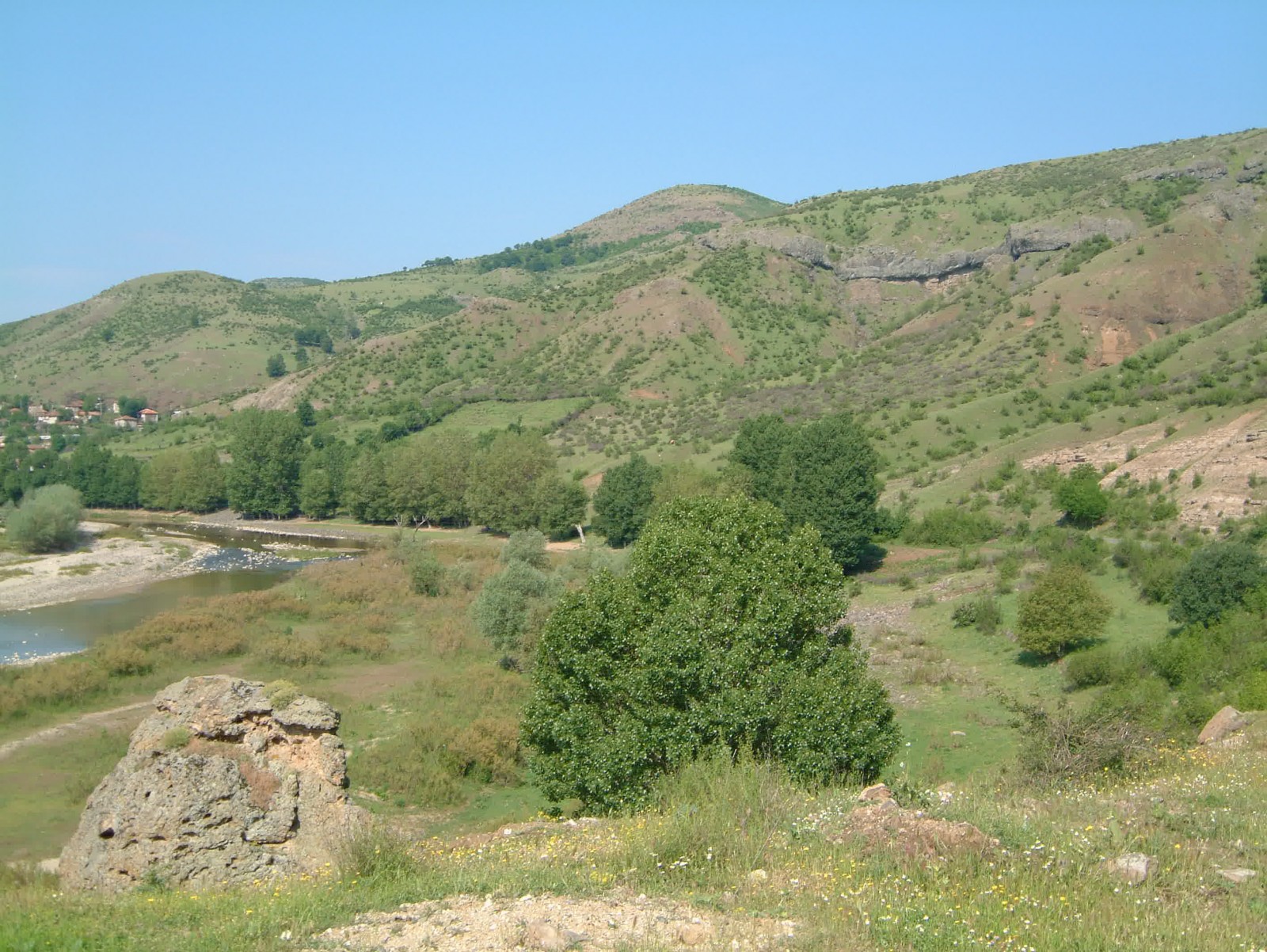 Very good mosaic of different habitats, providing suitable conditions for big variety of birds of different groups. Traditional and nature friendly agriculture practices allowed presence of birds as European Roller, Eurasian Hoopoe, Lesser Grey Shrike, Little Owl and other. The cliffs on the slopes provide nesting sites to the Western Rock Nuthatch, Black Stork, Common Raven and other. On the stony and bushy slopes Chukar, Black-eared Wheatear, Olive-tree Warbler, Subalpine Warbler, Sardinian Warbler and Eastern Orphean Warbler can be seen. Levant Sparrowhawk keeps to the tree belts along the river, where Eurasian Hobby can be observed, too. White Stork nests in the little hamlets in the area are nesting sites of the Spanish Sparrow.