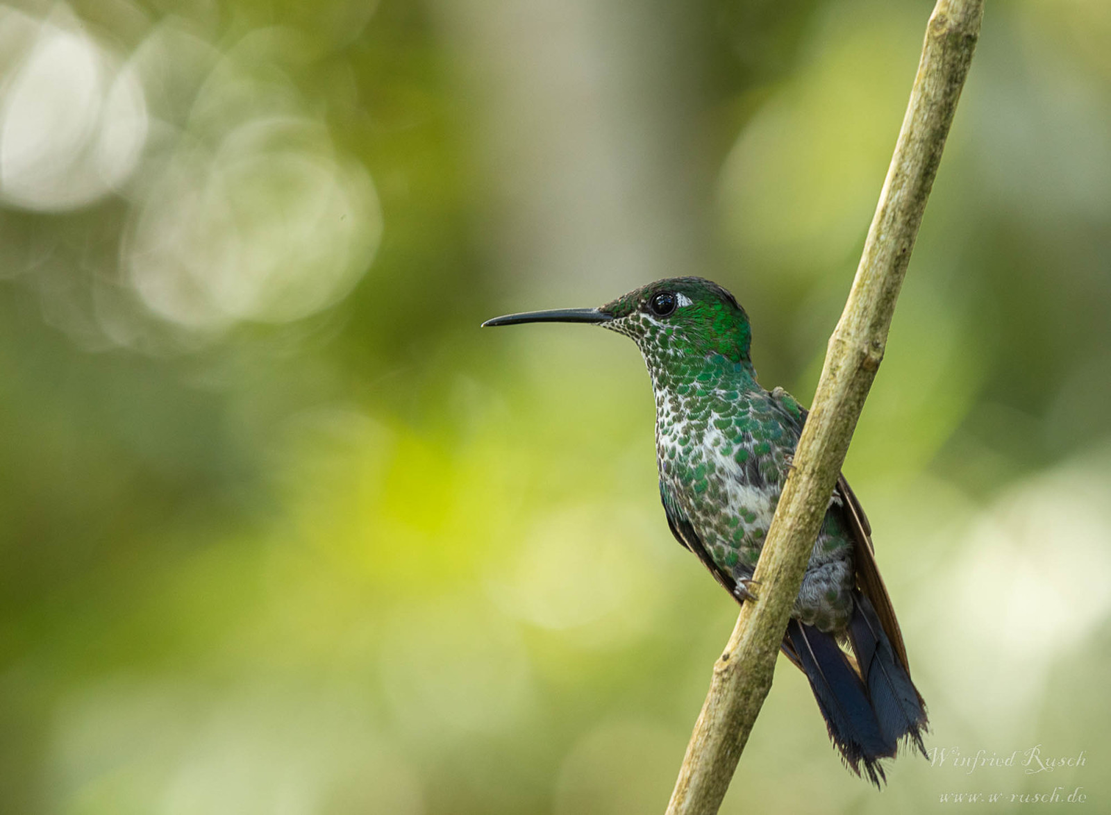 In 2009 the small café Soda y Mirador Cinchona (also known as Colibri Café or Soda Mirador Catarata San Fernando) was destroyed by an earthquake but was rebuilt again. This roadside restaurant and viewpoint is located in the middle elevations of the Caribbean slope. The best observation time is early in the morning (the café opens at six). But since this place usually acts as a stopover, visiting times are of course limited to your transit. You can also have excellent food here and can watch birds while having lunch. Also worth seeing is the view of the San Fernando Waterfall, which plunges over 70 meters as it emerges from the Barva Volcano.