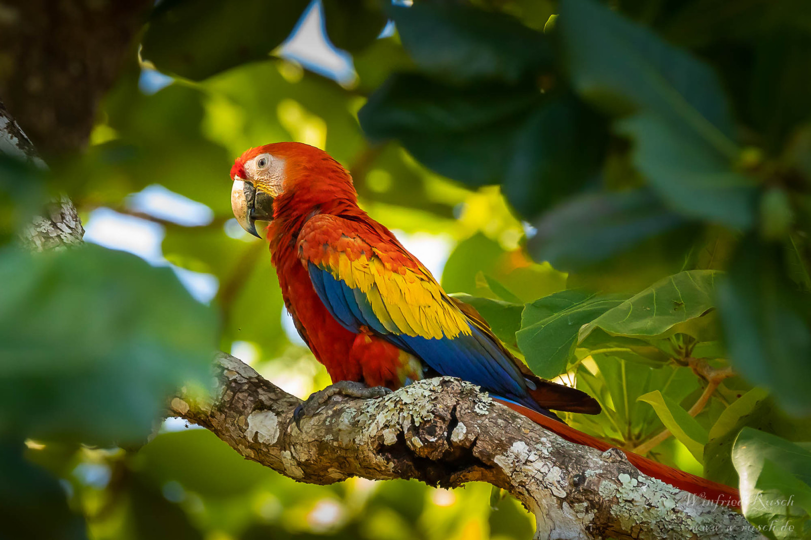 The mouth of the river Tárcoles is a very quiet estuary. Many birds are looking for food here. On the banks and mudflats you see many waders, herons and crocodiles. Be sure to plan a guided trip on the river (see the links to operators below), as the tour guides know the area very well. Many Scarlet Macaw can be seen flying around in pairs. The scarlet macaw is one of the largest parrots in the world. In the area I saw the following birds: Turquoise-browed Motmot, Common Black Hawk, Brown Pelican, Royal Tern, Mangrove Swallow, Scarlet Macaw, Willet and Rufous-naped Wren. The photos I made in the area are posted below.
