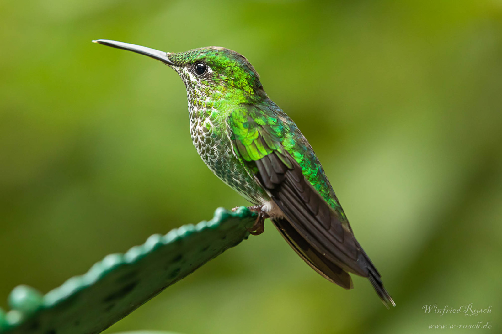 The Selvatura Adventure Park is set on over 486 hectares of protected virgin cloud forest. The Selvatura hummingbird garden is ideal for spotting lots of hummingbirds. You can observe more than 14 different species of hummingbirds, including species that are not commonly seen in other areas of Monteverde. I managed to make photos of the following hummingbird species: Coppery-headed Emerald, Green-crowned Brilliant, Purple-throated Mountain-gem, Violet Sabrewing, Rivoli's Hummingbird and White-throated Mountain-gem.