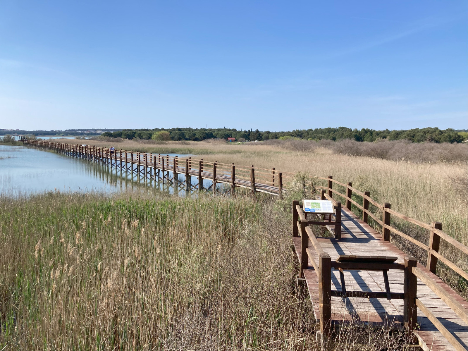 The boardwalk trail at Lake Vransko is easy accessible by car and has a parking. Click on the P in the map for directions to the parking. Besides the boardwalk, it is interesting to explore the area north of it. This is also part of the ornithological reserve. Note that not all paths are accessible. Please respect the signs and do not enter the areas that are not accessible to visitors. Having said that, the protected area between the Crkvine boardwalk and the village of Vrana has plenty of unpaved paths and rural roads that you are allowed to explore on foot and that lead to interesting wet meadows and small-scale agricultural fields.