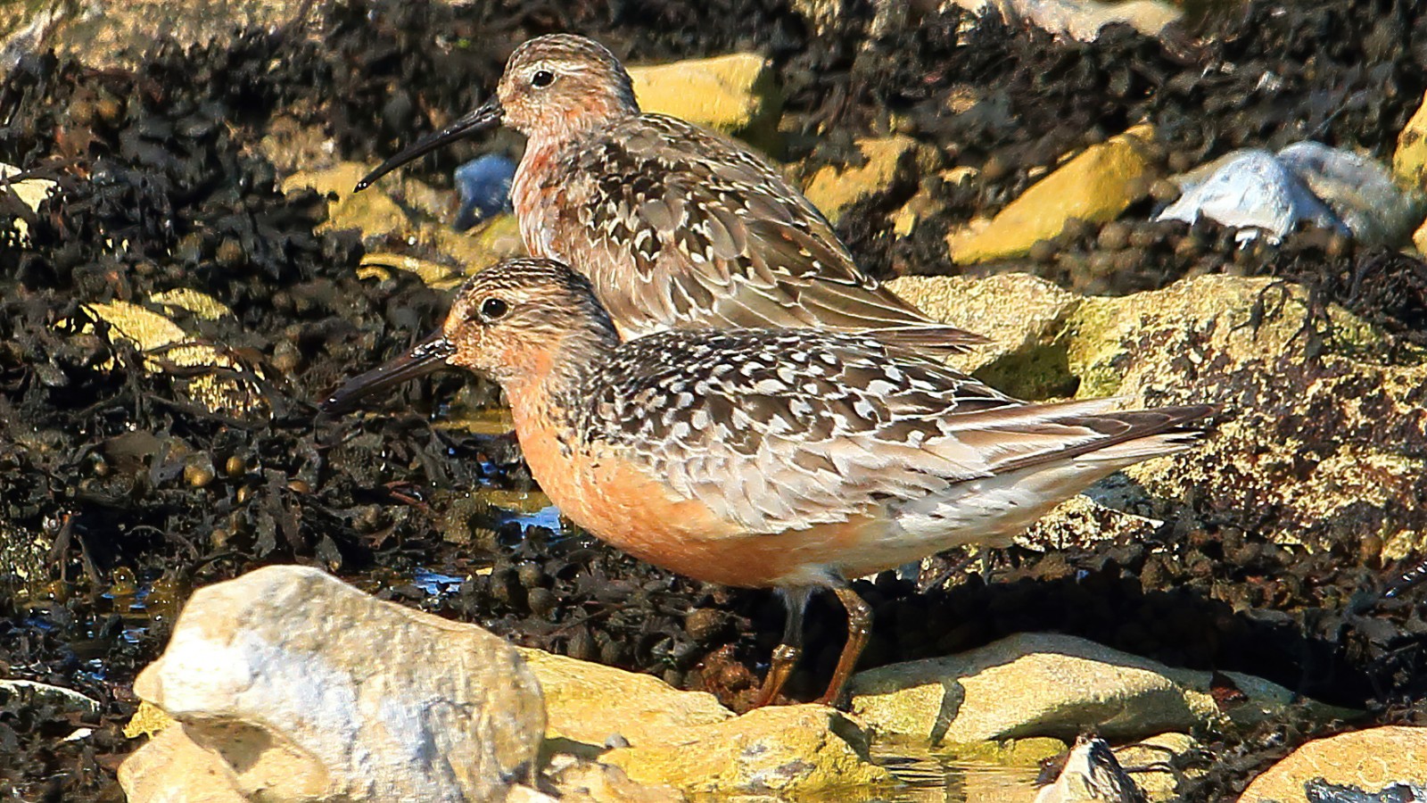 Waders live at the coast, as well as terns, ducks and geese. Various small birds such as Northern Wheatear come here outside their breeding season and usually stay a while before migrating further. Northern Gannet hunt outside the coast, though usually far out. Velvet Scoter and Common Scoter live here permanently.