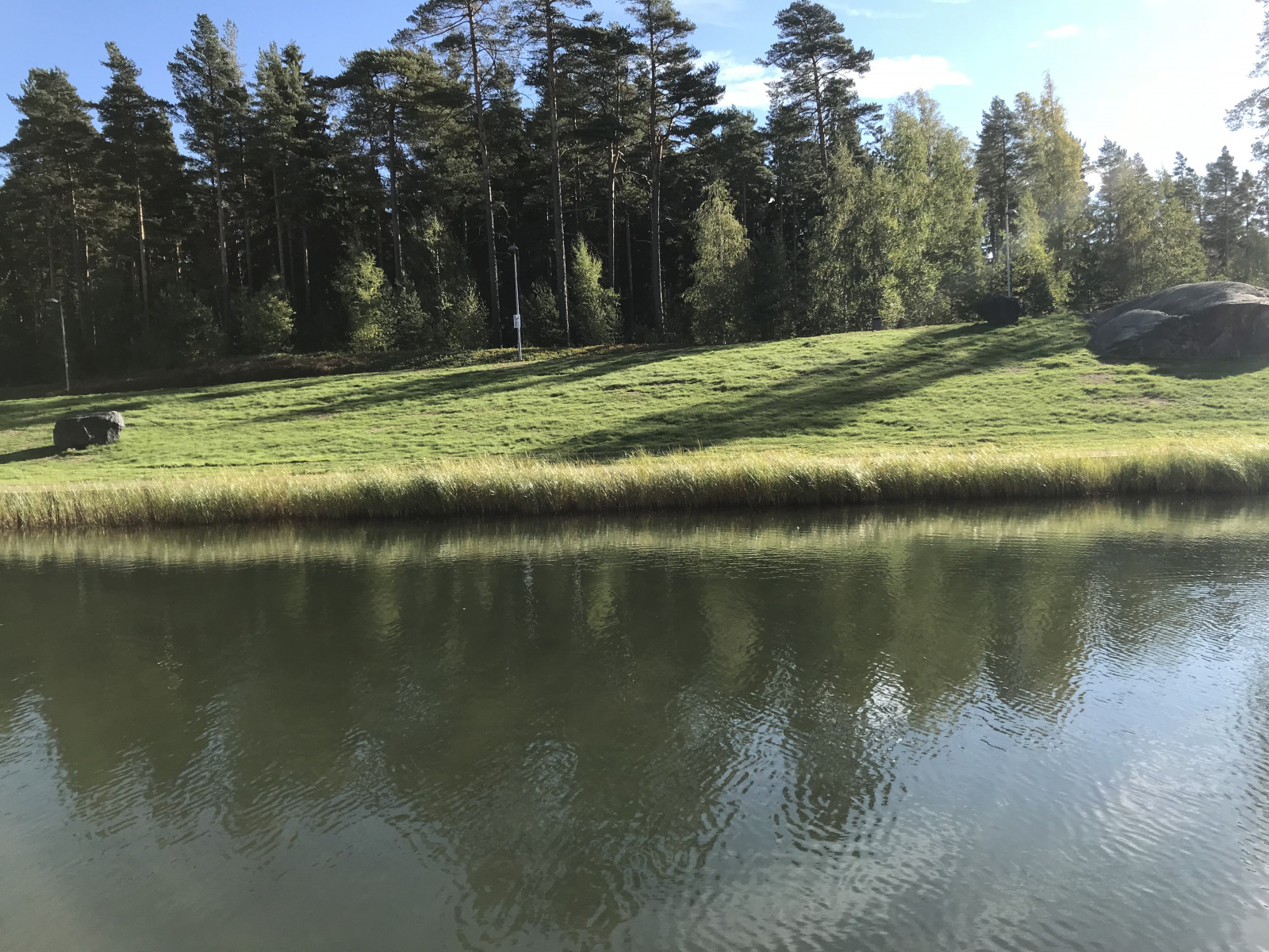When the spring migration season comes groups of Barnacle Goose arrive to the grass area next to the channel. They'll also raise their young by the channel during the summer too. As summer approaches, it's possible to see Common Goldeneye in the channel as well. There have been Common Goldeneye and Mallard ducklings on the middle level of the channel on multiple summers too. They often sleep on the rock close to the top waterfall. Common Gull , Black-headed Gull , European Herring Gull , Lesser Black-backed Gull and Common Tern are frequent visitors on the channel during summer. Numerous Common Swift and Barn Swallow also fly around the channel area and if one's lucky they might spot them collecting mud for their nests by the rocks on the lowest part of the channel. Eurasian Oystercatcher has also been seen foraging on the grass areas and some lucky birders have seen them bring their chicks there too. Linnet and European Goldfinch like to forage for food in the area. Sparrowhawk can also be spotted here.