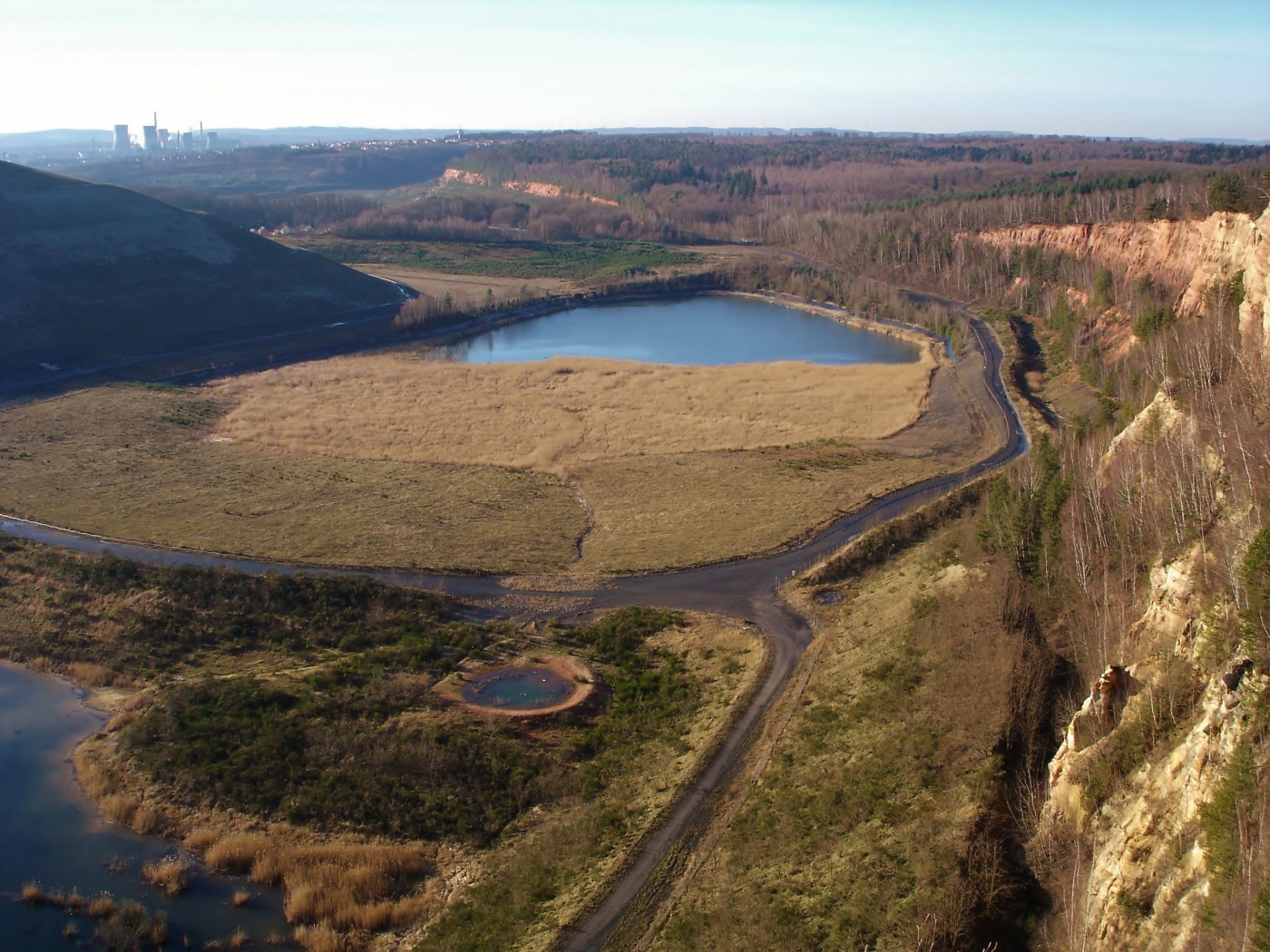 The Freyming-Merlebach quarry, within the Warndt massif is a new biotope where man, after destroying, now promotes the natural recolonization of places, without upsetting it. Located between the municipalities of L'Hôpital, Saint-Avold and Freyming-Merlebach along the Franco-German border, the old quarry of sandstone and sand runs alongside the natural space of the Warndt forest classified as Natura 2000 Network on the German side. It is the largest of the whole Lorraine coal basin. It is bordered on the south side of the old slag heap of the Sainte-Fontaine coal mine. Operated from 1920 to 20014 to fill the voids left by coal mining, it presents itself as a deep canyon, 7.5 km long and 850 m wide. The bottom is occupied by various bodies of water due to the rise of the water table and fed intermittently by the Doerrenbach (stream).