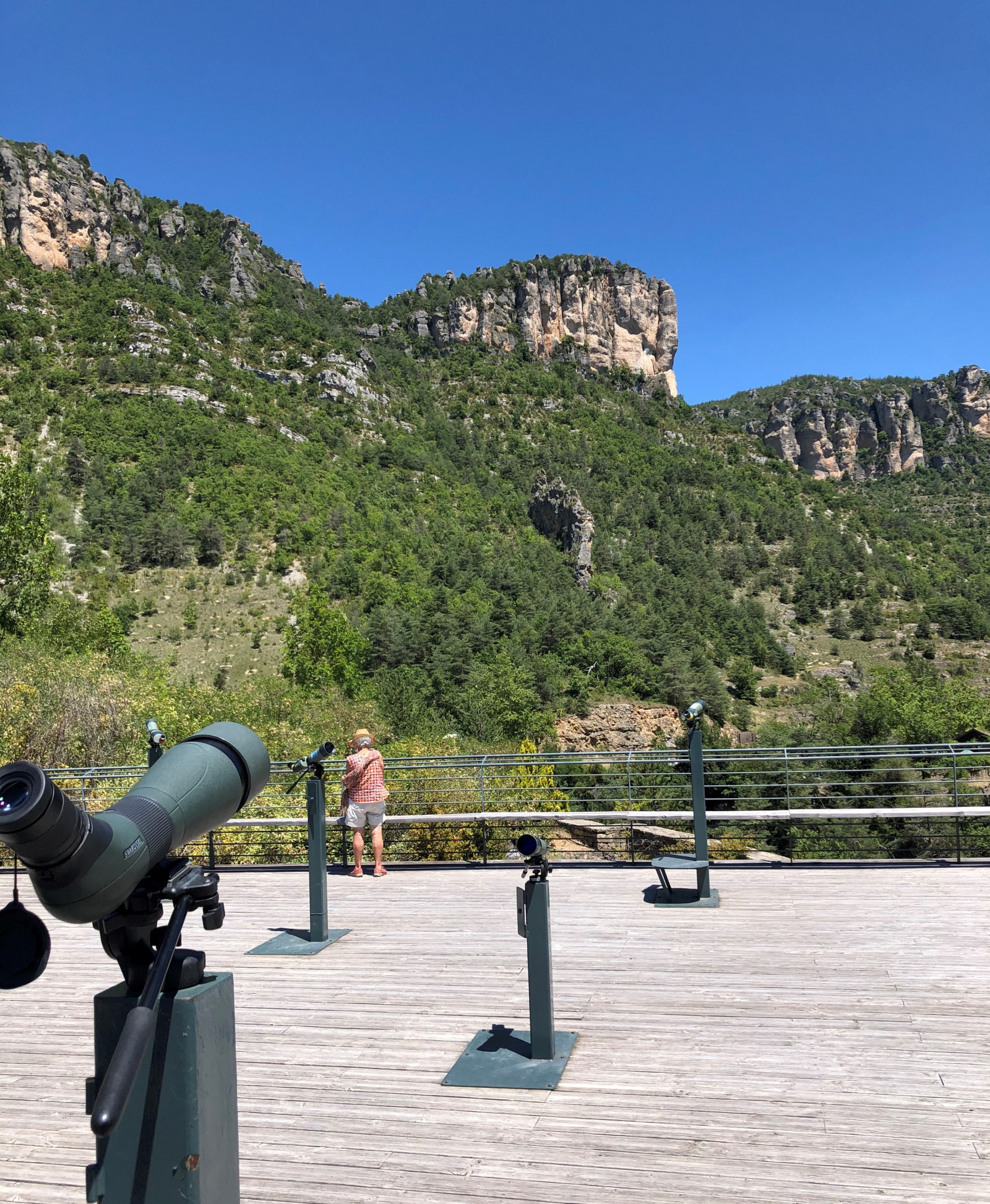 The viewpoint itself is a platform, built into the rock. It is part of the "maison the vautours" (house of the vultures); an interpretation centre dedicated to the reintroduction of the vultures in the region of the Grands Causses. It turned out to be one of the most successful reintroductions in europe: nowadays the area holds around 500 pairs of Griffon Vulture and, even more impressive, 28 pairs of the endangered Black Vulture.