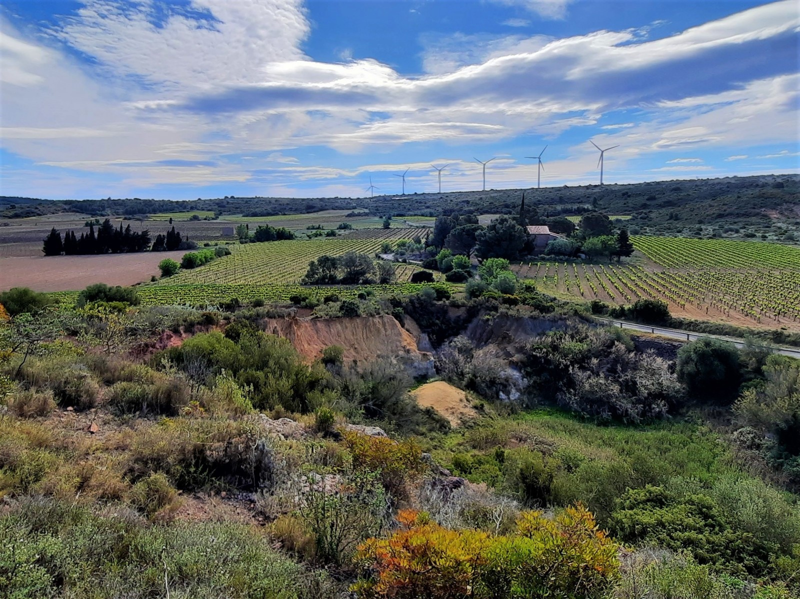 Français: Boucle entre vignes, friches et garrigues pour observer des espèces méditerranéennes. Ce site est composé de garrigue très ouvertes favorables au Cochevis de Thékla, au Traquet oreillard et à la Pie-grièche à tête rousse. Les vignes et friches sont également attractives pour d'autres espèces telles que le Pipit rousseline.