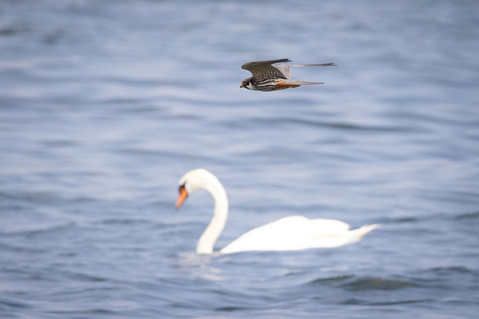Almost the whole year but especially in winter the area is one of the best places in the Upper Rhine region to watch all sorts of ducks, grebes and divers. Even rarer species like Great Northern Diver , Ferruginous Duck and Red-breasted Merganser can be found here. For divers the north of the area is a good place to have a look in winter. It can be worth it to look a the gulls more closely. Sometimes there are Little Gull , Mediterranean Gull and Caspian Gull between the Yellow-legged Gull and Black-headed Gull .
