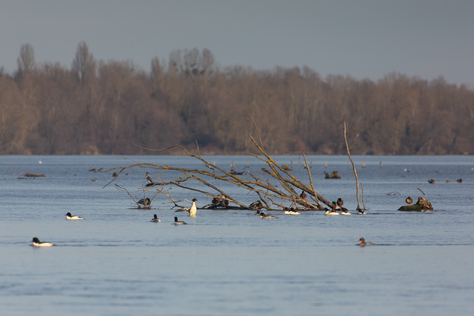 The large water area is connected to the river Rhine and contains a vast number of birds that migrate and spend the winter in this area.