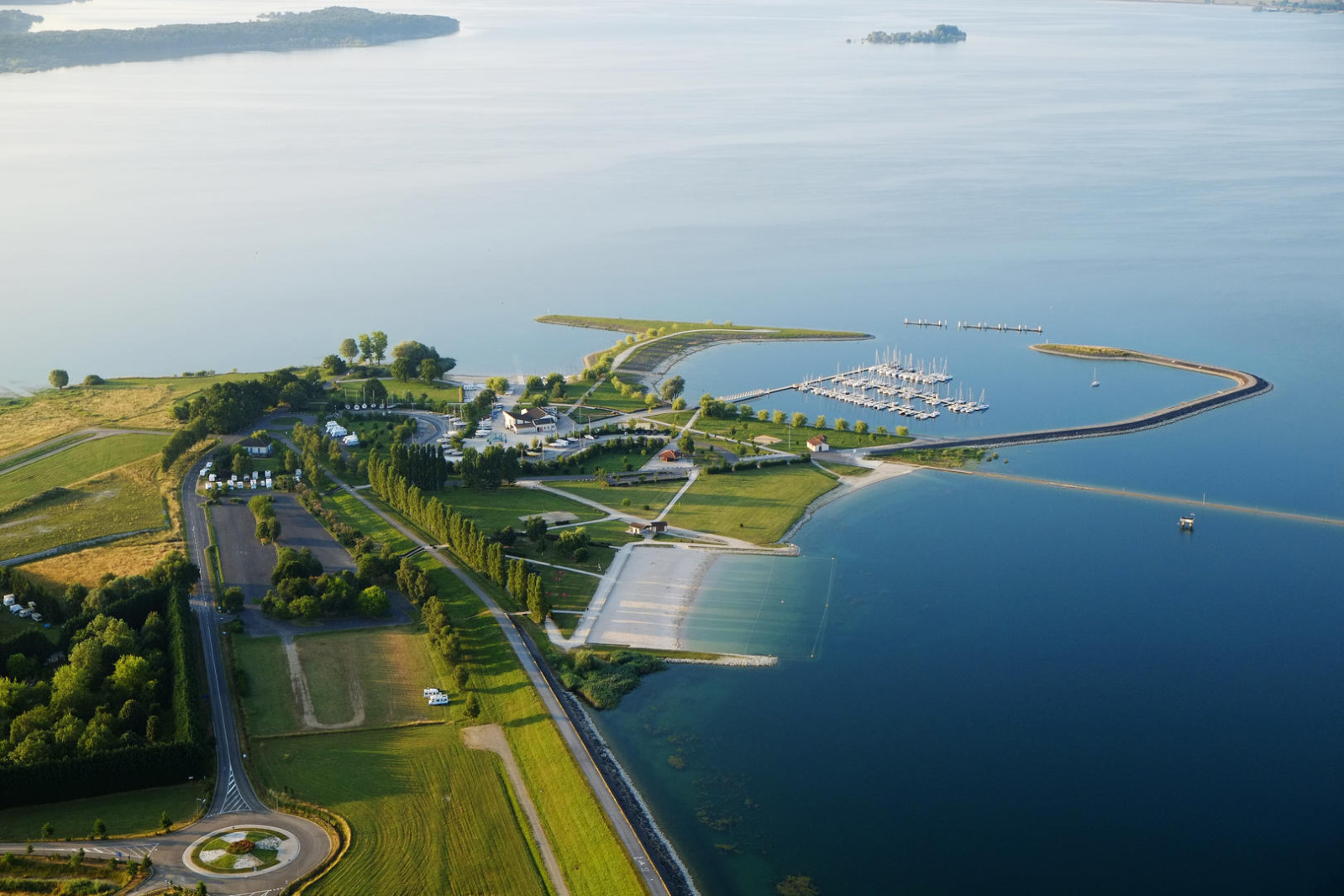 Français: Séparé du lac par une digue, le Bassin nord est un superbe lieu pour l'observation d'espèces d'anatidés (et d'oiseaux d'eau en général). Le site se compose d'un grand bassin (séparé du lac par une longue digue), d'un havre portuaire faisant face au lac et à un ilôt proche. Le bassin comme le lac accueillent toutes sortes d'espèces d'anatidés de plongeons, de limicoles et d'oiseaux divers, aussi bien communs que rares.