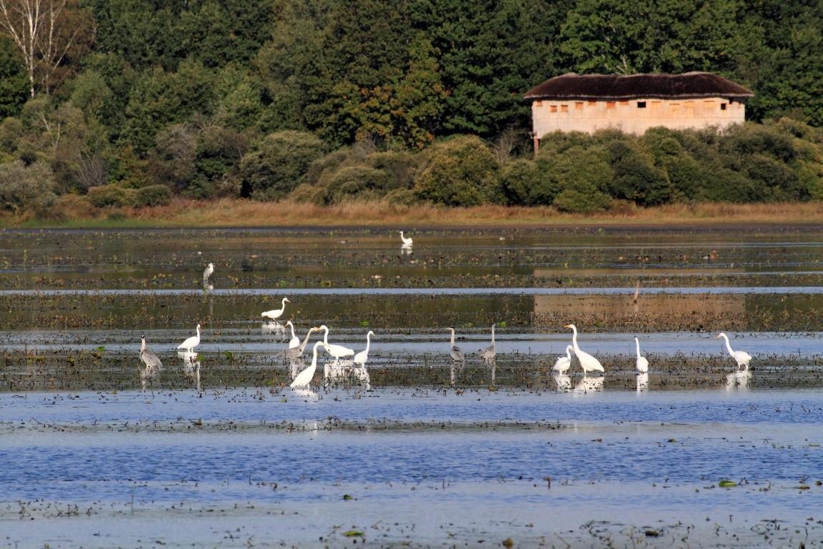 Among the birds that you will be able to observe the most easily are: Mute Swan , Common Pochard , Grey Heron , Mallard, Eurasian Coot, Great Crested Grebe, Great Cormorant , Black-headed Gull , Common Teal , Great Egret and also Common Snipe. But with a little luck, you can also see much rarer species like the Sedge Warbler , Little Egret , Cattle Egret , Greylag Goose or the very secretive Spotted Crake . It is also interesting to note the presence of a couple of White Stork right next to the site. And there is always a chance on unexpected surprises: In 2019 3 Great White Pelican visited the pond.