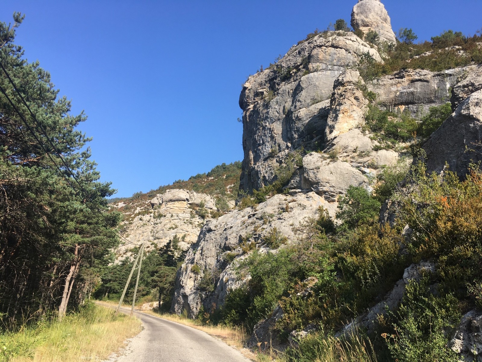 The best way to explore the road is by bike. But of course you can also walk. From Orpierre the road gradually ascends towards Villebois les Pins. The route you see on the map is 5 km, this is the most interesting part, but you can go on to Villebois les Pins, the road remains very attractive also after the small canyon.