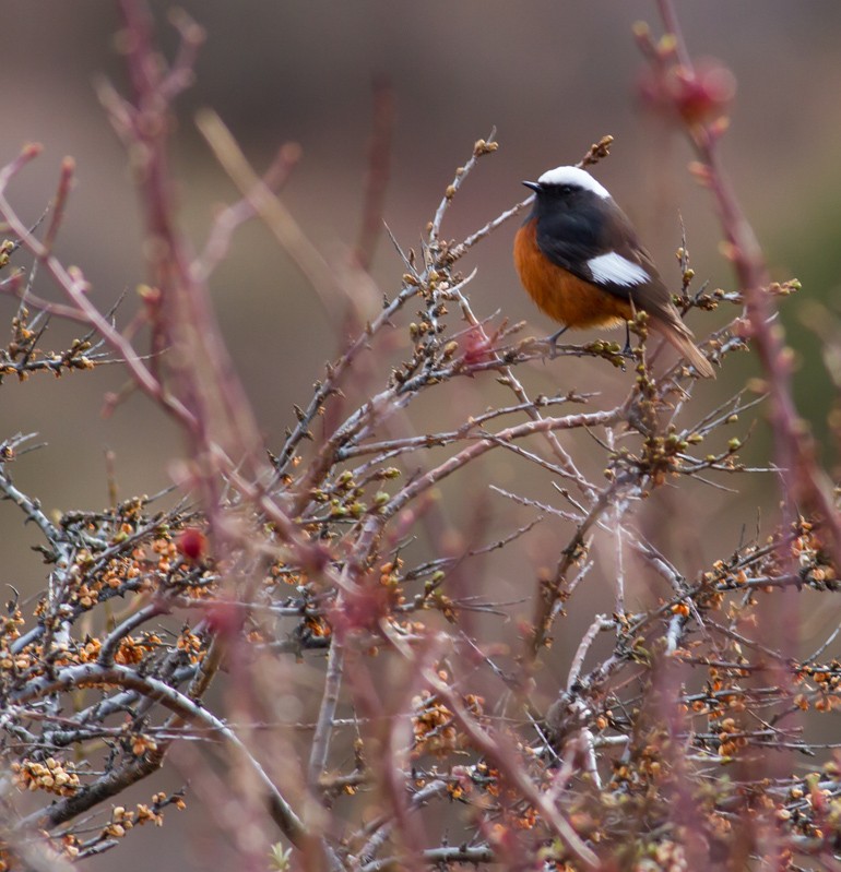 Mount Kazbek (5033m asl) towers above the small town and is a sight for sore eyes in the morning when it's still freezingly cold down in the village. Birds like Wallcreeper (newly created electric dam) and Red-fronted Serin (flying by) can be easily seen close to the village. Caucasian Grouse and Caucasian Snowcock require a little more effort and being an early bird pays off here. For both these species you have to watch, at dawn, from the road leading up to Ioane Natlismcemeli (small monastery on the east side of the town). Mountain Chiffchaff (Caucasian), Ring Ouzel and Red-fronted Serin can be seen here too. White-winged Redstart and Great Rosefinch (two of the star birds) can be seen wintering in the Hippophae (Sea buckthorn) bushes to the southeast and northwest of the village. The Gergeti Trinity Church is a good place to start a hike up towards the glacier, all the specialties can be seen along the route there.