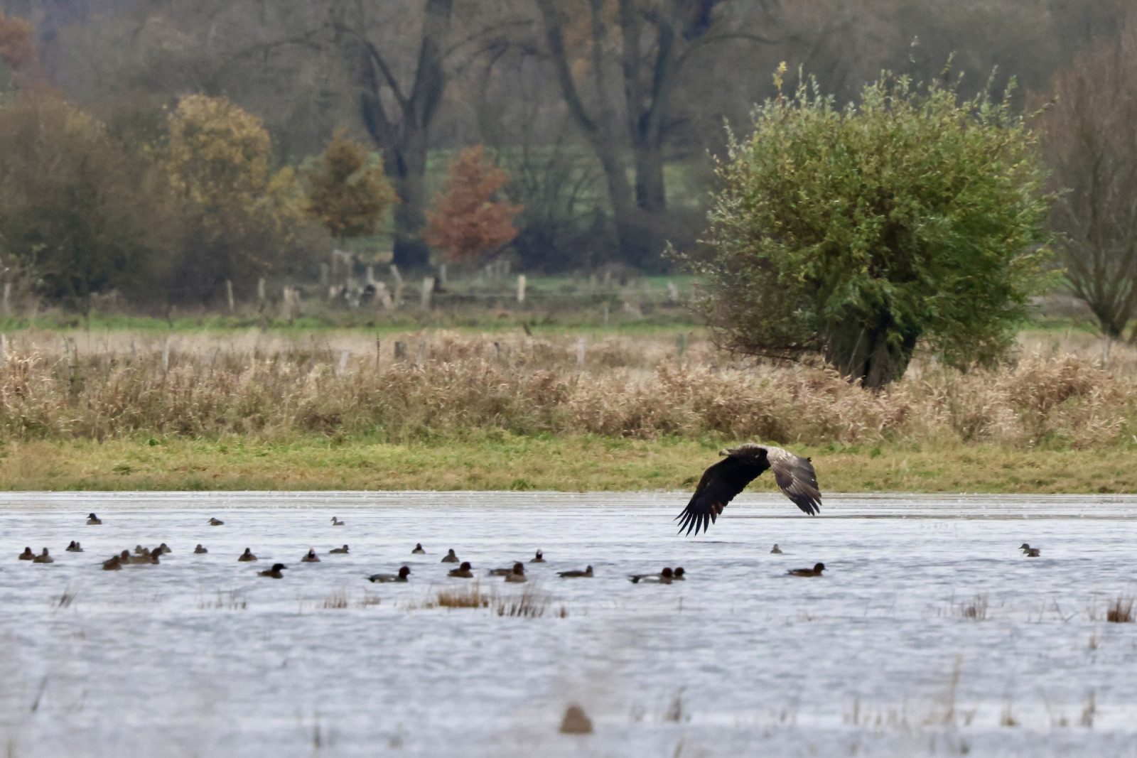 The Duvenseer Moor is a broad, quiet moorland shaped by the slow infilling of post‑glacial lakes after the last Ice Age. Over the centuries the lakes silted up, peat accumulated, and by the nineteenth century the area was drained and cut for peat, leaving the lowered, open moorland that survives now. In winter the flooded areas serve as a resting and feeding area for many birds. Birds you can observe include Greater White-fronted Goose, Bewick's Swan, Whooper Swan, Common Shelduck, Garganey, Northern Pintail, Eurasian Teal, Common Pochard, Common Cuckoo, Common Crane, Northern Lapwing, Eurasian Curlew, Ruff, Common Snipe, Hen Harrier, Western Marsh Harrier, White-tailed Eagle, Eurasian Hobby, Red-backed Shrike, Bearded Tit, Sedge Warbler, Common Nightingale, Eurasian Bullfinch, Eurasian Siskin and Yellowhammer.