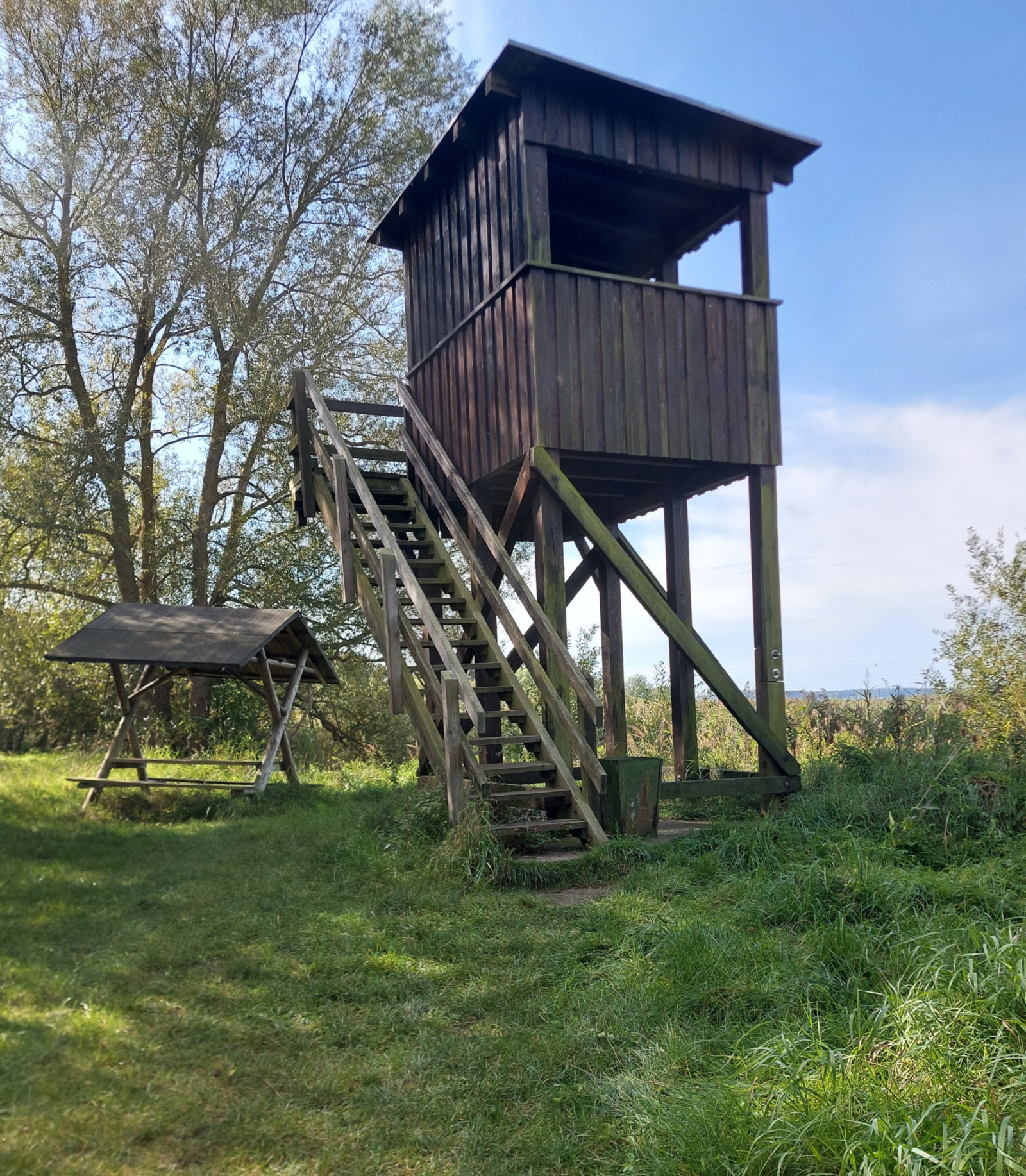 You can park just outside the village of Kützerhof. From there it is a 2,5 km walk through a very bird-rich area to the bird tower. Press P on the map to get directions to the parking.