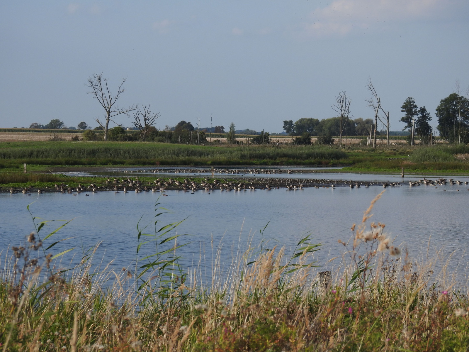 Waders stop at the Holzendorfer See during the spring and autumn migration. Maybe not in huge numbers, but there is a large species diversity: Ruff, Northern Lapwing, Common Greenshank, Spotted Redshank, Common Redshank, Wood Sandpiper, Common Sandpiper, Green Sandpiper, Dunlin, Curlew Sandpiper, Little Stint, Temminck's Stint, Common Ringed Plover and Common Snipe. There is a chance for rarer species like Broad-billed Sandpiper, Red Knot and Sanderling. Also observed here are Pectoral Sandpiper and White-tailed Lapwing. In the spring, all the "spring" ducks also stop here: Northern Shoveler, Northern Pintail, Garganey, Common Teal and Eurasian Wigeon. In late autumn you can meet here a large number of Common Crane and Whooper Swan. During the breeding season Northern Lapwing, Common Tern, Little Ringed Plover and Greylag Goose nest here.