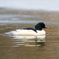 The Koldinger Teiche (Koldinger Ponds) attract many birds with its extensive water surfaces and green shores. For more than 40 years, gravel sands were mined here. Legacy: Around 190 hectares of water, spread over a dozen lakes. Due to its great importance for birds the lake landscape has been protected since 2001. There is a circular hiking trail (4 km) around the biggest lake (Großer Koldinger See) and there are two bird observation towers on its shores. Among the birds that can be seen are Goosander, Smew, Reed Bunting, Sedge Warbler, Reed Warbler, Common Goldeneye, Little Grebe, Caspian Gull, Common Kingfisher and Osprey.