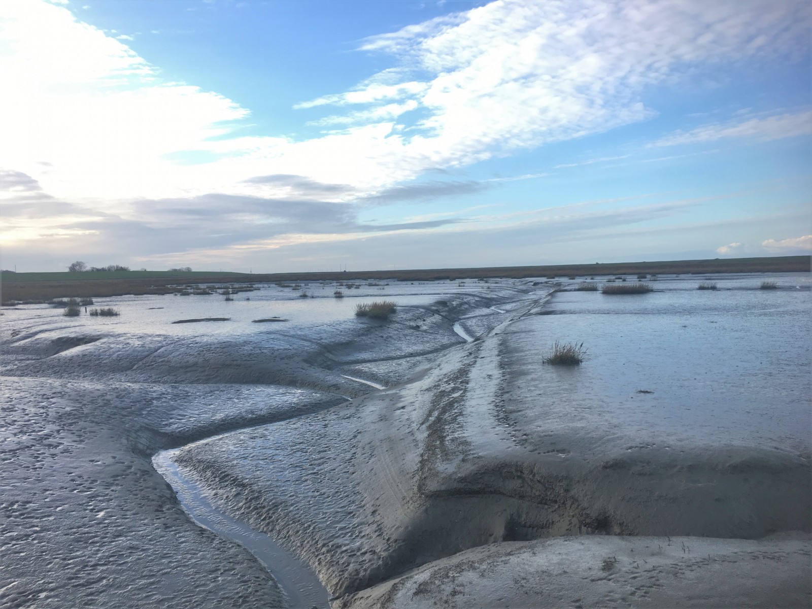 The Langwarder Groden was created by reopening a front dike, so that the diked Groden was opened again to the influence of the tide. This created extensive mud flats, shallow water areas and salt marshes - habitats for many breeding and resting birds. The Groden is part of the Wadden Sea National Park. During the breeding season, for example, Meadow Pipit, Eurasian Skylark, Common Redshank or Northern Lapwing can be found here. During migration times, numerous migrants of the Wadden Sea can be observed here, partly in impressive numbers of waders, such as Common Redshank, European Golden Plover or Eurasian Curlew and ducks, such as Eurasian Wigeon, Common Teal or Northern Pintail. Short-eared Owl and Hen Harrier also hunt in the salt marshes in winter.