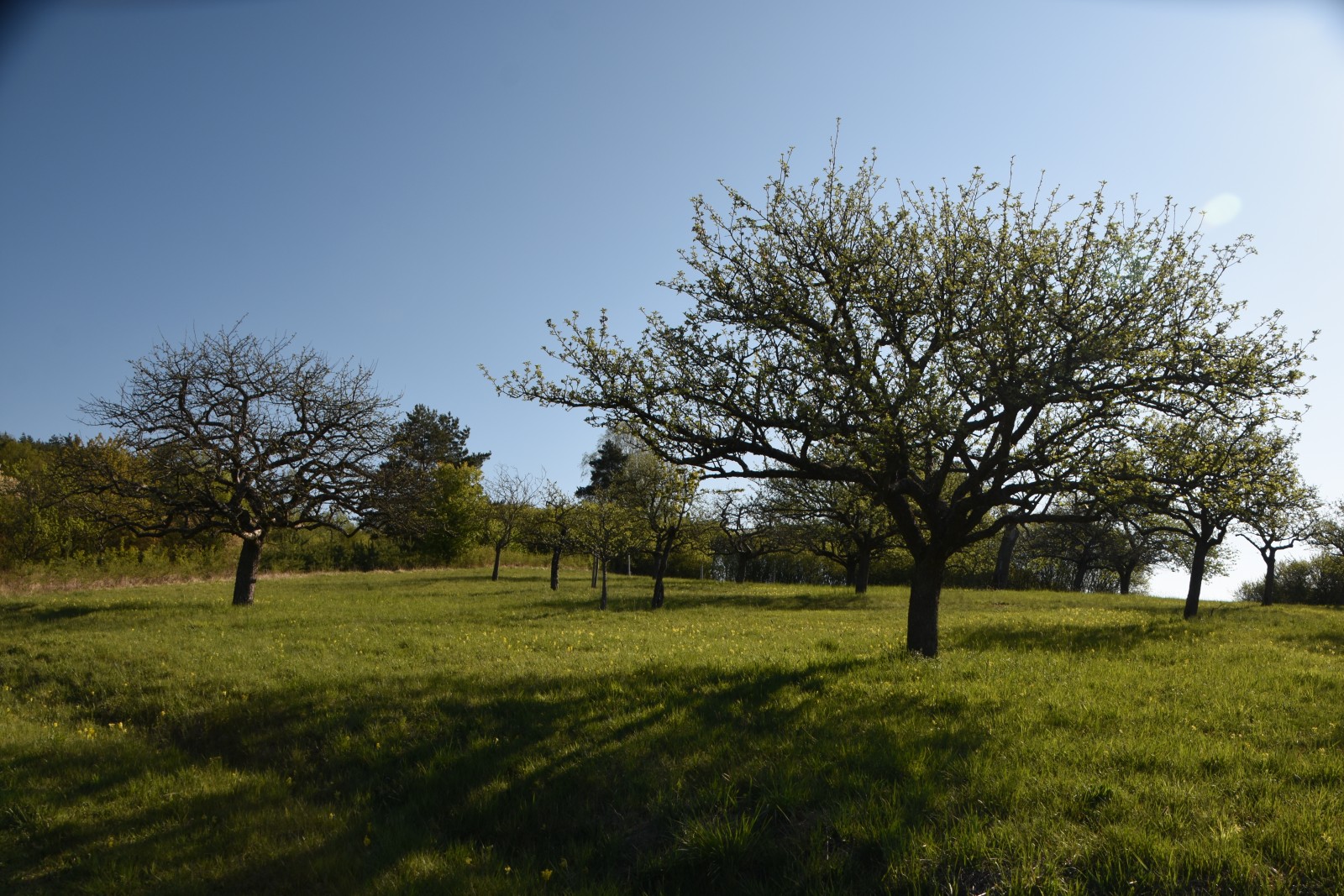 Hänge am Kraiberg is an area of neglected grassland with old common fruit trees. The fruit trees (mainly apple, prune and pear) are in part overaged or dead. In some areas traditional fruit trees have been replanted. Numerous hedges (whitethorn and blackthorn) and small clusters of forest trees are scattered in the area. An adjacent mixed woodland consisting of oaks and pines lies to the north of the nature reserve. A good place to listen and observe the red listed bird species Eurasian Wryneck and Tree Pipit.